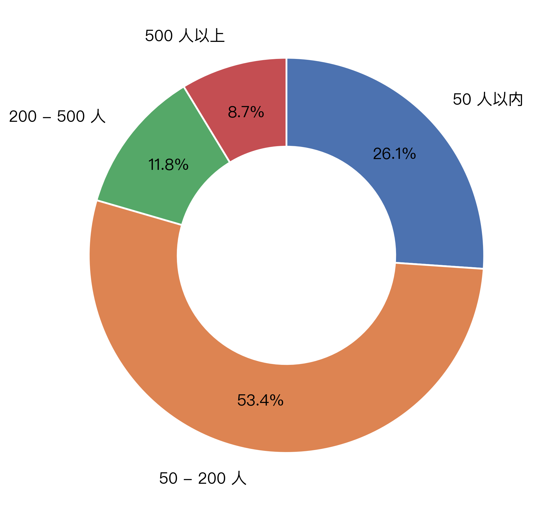 从社区活跃用户规模来看，**“50–200 人”的中等规模社区最为常见，超过一半的运营者所在社区集中在这一档**；“50 人以内”的小微社区大约占到四分之一，而“200–500 人”的中大型社区和“500 人以上”的大社区合计不到三成。整体上看，当前样本中的开源社区仍以数十到数百人的中小规模为主，极大型社区相对较少。