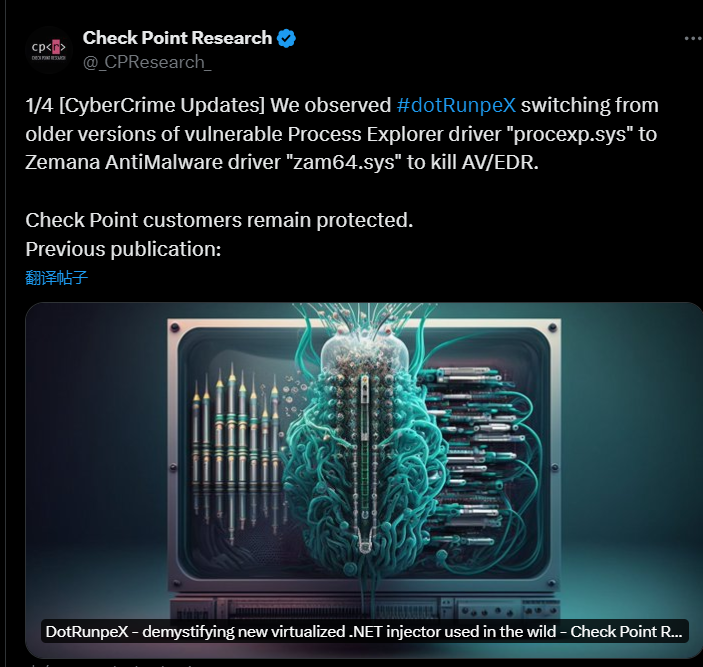 Fortunately, Checkpoint’s related Twitter updated some progress regarding the `RunpeX` injector.