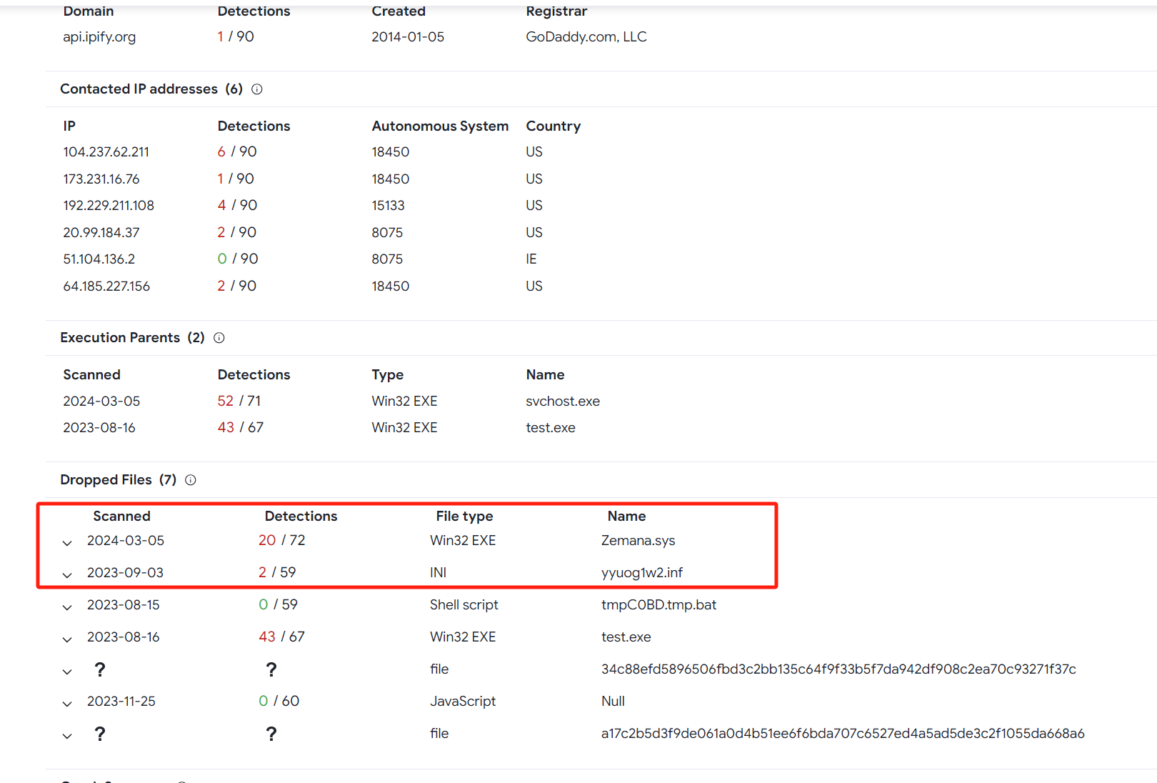 At the same time, the hashes of the test.exe and Zemana.sys files can be found in their related hashes.