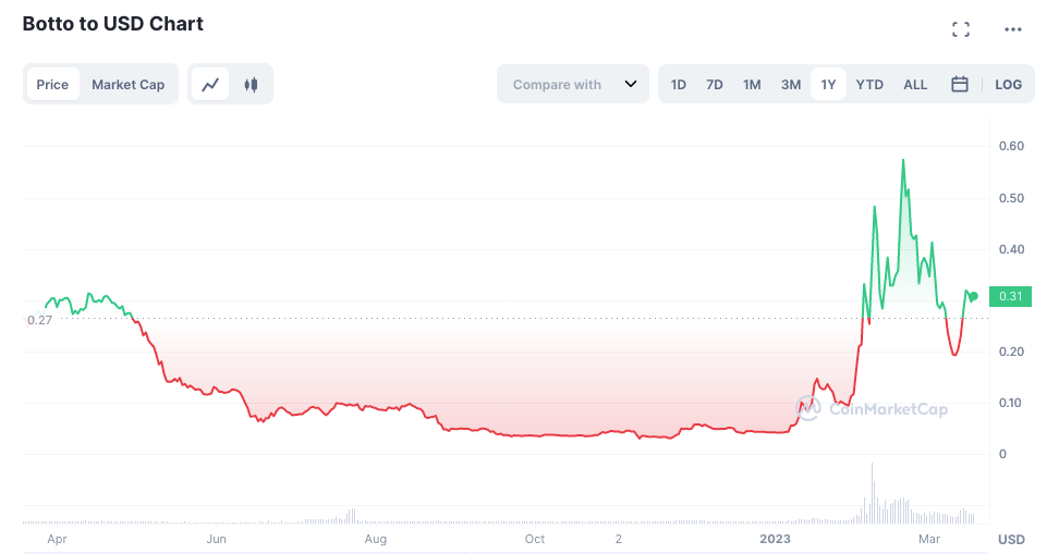1 $Botto = $0.31, and it has been trending up in 2023.