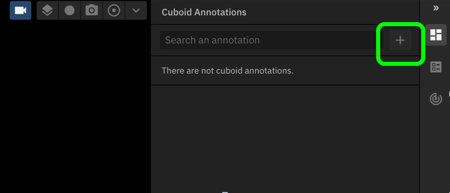 **Add a new cuboid by going to the Cuboid annotation sidebar and clicking `+`, or hitting the `N` button:**