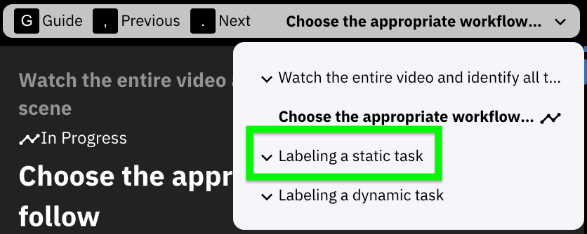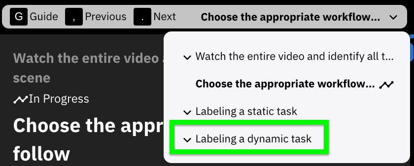 * If the task is **dynamic**, follow the dynamic instructions by clicking `Labeling a dynamic task` in the workflow dropdown: