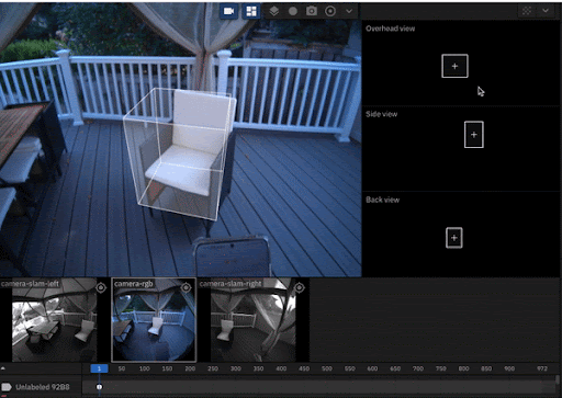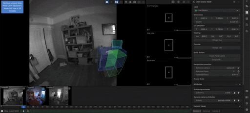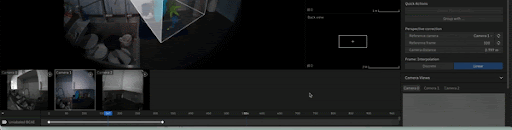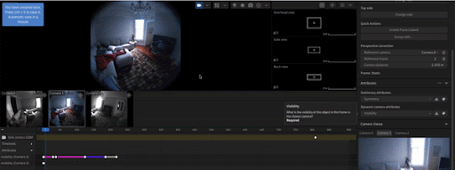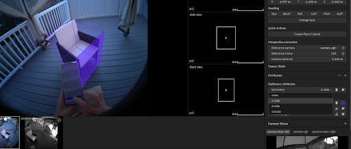 * Adjust the camera distance up and down until the cuboid lines up across all frames. You may also have to continue to adjust the size and position of the cuboid.
