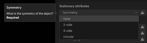 The symmetry of the object can be none, 2-sided, 4-sided, or circular.
