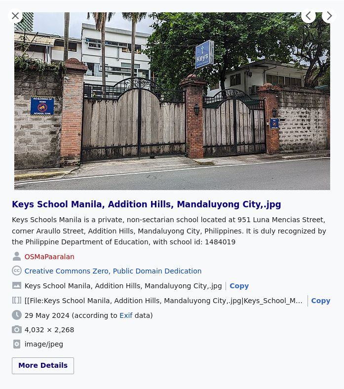 [](https://commons.wikimedia.org/wiki/File:Keys_School_Manila,_Addition_Hills,_Mandaluyong_City,.jpg)