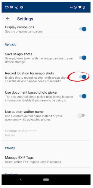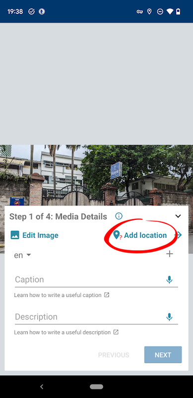 * Download and install the [Wikimedia Commons App](https://play.google.com/store/apps/details?id=fr.free.nrw.commons) for Android from the Play Store.
