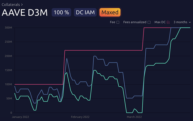 At the current bar of 2.85%, Maker's debt ceiling of 300M is being fully utilized which means we can't provide the benefit of borrowing rate stability (one of the benefits of D3M integration). This is also forcing down competitive borrowing rates and potentially reducing Maker's market share - this effect could increase due to previously mentioned changes in the Aave market which will increase ETH collateral deposit rates. Increasing the bar will help address these concerns, while also ensuring Maker adheres to the voter approved mandate of making up only 30% of real dai supplied and 0.5% maximum effective spread between Maker and Aave rates.