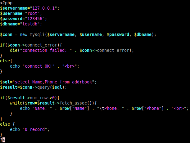 `[root@mycentos7-1 ~]# vim /var/www/html/testdb.php`