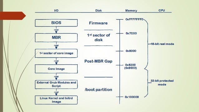 - BIOS 執行的最後,JMP 到 0000:7c00,也就是 MBR 被讀取到 RAM 的位置,此時 DL 會放開機裝置號
