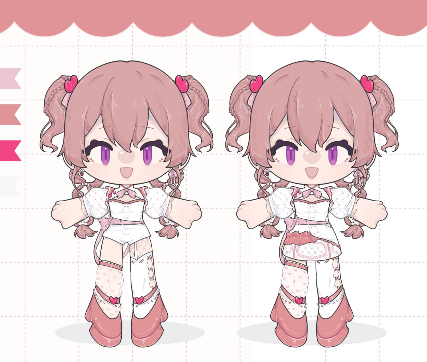 # **綺流** 「想要帶給大家歡樂與幸福!」 * **(沒有特別說明的均是自繪)** * **換裝/服設不能再繪製(委託/轉蛋)請直接退** * **如果能看一眼衣櫃我會很感激,謝謝各位大人(畫初始服裝的太多了)** **【注意】** ○換裝 ╳色情服裝(除非我指定) ╳瓜主,蝴蝶小姐 ╳擅自脫衣服 **禁止色情向** --- <font size=1 color=gray>具體設定在下面</font>  [繪師:轉蛋](https://www.plurk.com/p/p45nxs) <font size=1 color=gray>燒肉真的太神了</font> # **設定圖+外觀描述(請不要照抄動作)**   原角色設計:抹茶 **衣櫃的衣服比較簡單** 外貌描述(檢查用): 1. 紫色眼睛,睫毛很長,眼角向上 2. 粉色頭髮,**瀏海在眼上**兩側頭髮有兩層,長的部分到胸前。長髮到大腿上面,有綁兩個小馬尾,頭髮尾端中等卷 --- # **簽名** [透明圖檔點這裏](https://images.plurk.com/1Ycfwheac2d73UKfEFl0SL.png )  --- # **簡單介紹:** * 性別:女 * 身高:163cm(不算鞋子160cm) * 種族:人類 * 職業:偶像+演員 * 性格:有點天然,活潑,樂觀,敏感,善於觀察,溫和。對工作很認真。   **因為工作關係,有需要什麼表情以及性格都可以做到**。   比較經常走**清純,性感,可愛風格** * 身材:有馬甲線,穿衣顯瘦,C罩杯 * 寵物:倉鼠,品種是黑熊,名字叫煤炭 * 喜歡:手帳,拍攝,唱歌,演戲,動畫,畫圖,倉鼠,新衣服 * 討厭:私生飯,待在家,游泳,菇類,生病,陽光 ::: spoiler **個人介紹(可不看):** 綺流出生在藝術世家,父親是音樂家,母親是歌劇演員。綺流從小就跟著父母一起表演,在8歲的時候就出道了。 大家對她的評價是表演天才,沒有綺流做不到的風格。生活重心大部分在演戲,也喜歡當模特,私下會寫日記以及收集自己的照片做成手帳收藏。 平常在家會看動畫,也有悄悄開一個帳號發佈作品以及曬倉鼠。 關於綺流: 工作人員評價:「原本以為這樣陽光的孩子演不出來那種悲壯的場景,但是當錄影開始時,不管是表情,還是氛圍都瞬間改變了。至今閉上眼仿佛依舊能看到當時的表演,真的太精彩了。」 ::: # 吉祥物粉咕嚕 平常會在電子面板出現,會呆在電子產品裡面,比如手機   --- # **小動物化**  繪師:ㄘㄘ <font size=1 color=gray>最會畫可愛小動物的神仙</font> --- # **獸人化**  [繪師:水母](https://www.plurk.com/p/p4pex3) --- # **換裝須知** 穿著(可隨意換裝):**什麼風格都可以,除了色情向** 參考色系:粉色,紫色,金色 編髮:可隨意編髮但請不要改變長短,不能燙直 服裝參考方向:不喜歡太陽所以經常會帶著傘   代表花是玫瑰,喜歡跳舞所以各種舞蹈服裝都可以,演戲也會用上不同國家的服飾 雷點:情趣服裝,露點,顏色全部高飽和,亮綠色 --- # **可參考用連結** **噗浪相關樓請不要按愛心,留言或者是投幣** :::spoiler **自繪圖參考(點擊展開)** 繪製時間跨度大所以有差距    ::: --- * **[參考用圖集中](https://www.plurk.com/p/p643gr)** --- # **衣櫃** ### 1.正月偶像服  繪師:counter <font size=1 color=gray>狐狸老師砸我......超神......</font> :::spoiler **使用範圍+參考來源(點擊展開):**  參考來源:  ::: --- ### 2.徘徊花舞曲  [繪師:米香](https://www.plurk.com/p/p1o7cj) <font size=1 color=gray>超誇張好看</font> :::spoiler **使用範圍(點擊展開):**  ::: ### 3.秋服  [繪師:橡](https://www.plurk.com/p/p0h6ox) <font size=1 color=gray>怎麼會...這麼可愛...</font> :::spoiler **使用範圍(點擊展開):**  ::: --- ### 4.𝕬𝖘𝖙𝖗𝖔𝖑𝖔𝖌𝖞  [](https://) [繪師:起司蛙](https://www.plurk.com/p/p3tiod) 使用範圍:看不懂的地可方自行想像 其餘不可改動 :::spoiler **截圖(點擊展開)**  ::: --- ### 5.打歌服  [繪師:西呱](https://www.plurk.com/p/p0ygqo) :::spoiler **使用範圍(點擊展開):**  ::: --- ### 6.日常服1  [繪師:背包](https://www.plurk.com/p/p1uh36) :::spoiler **使用範圍(點擊展開):**  ::: --- ### 7.大正玫瑰  [繪師:語雨](https://www.plurk.com/p/p471xm) <font size=1 color=gray>紅玫瑰...神</font> :::spoiler **使用範圍(點擊展開):**  ::: --- ### 8.日常風偶像服  [繪師:yn](https://www.plurk.com/p/p0dno6) :::spoiler **使用範圍(點擊展開):**  ::: --- ### 9.萬聖節吸血鬼 **有小尖牙**  無翅膀 [繪師:九日](https://www.plurk.com/p/p01528) :::spoiler **使用範圍(點擊展開):**  ::: --- ### 11.簡單洋裝  [繪師:Mir](https://www.plurk.com/p/p0yei2) :::spoiler **使用範圍(點擊展開):**  ::: --- ### 12.日常服3  [繪師:轉蛋](https://www.plurk.com/p/p2gs2k ) :::spoiler **使用範圍(點擊展開):**  ::: --- ### 13.聖誕節  [繪師:噗幣轉蛋](https://www.plurk.com/p/p328zv) <font size=1 color=gray>這個編髮真的超可愛</font> :::spoiler **使用範圍(點擊展開):**  ::: --- ### 14.新年  [繪師:chocotty-ding](https://www.plurk.com/p/p3wflp) :::spoiler **使用範圍(點擊展開):**  ::: --- ### 15.街頭+晚禮服+護士  [繪師:十三](https://www.plurk.com/ShiSan_) 使用範圍:非商用範圍皆可,也可委託修改,不可直接改圖 --- ### 16.日常服4  [繪師:幻谷](https://www.plurk.com/p/p4fjjl) :::spoiler **使用範圍(點擊展開):**  ::: --- ### 17,和風打歌服  繪師:橘子派 :::spoiler **使用範圍(點擊展開):**  ::: --- ### 18.雙排扣風衣  [機台鏈接](https://www.plurk.com/p/p5ov4f) :::spoiler **使用範圍(點擊展開):**  ::: --- ### 19.宇宙偶像  繪師:禾日禾日 :::spoiler **使用範圍(點擊展開):**  ::: --- ### 20.萬聖節幽靈  [繪師:麻辣鍋裡的狐狸](https://www.plurk.com/p/oywici) ::: spoiler **使用範圍(點擊展開):**  ::: --- ### 21.復古小禮服   繪師:由希 :::spoiler **使用範圍(點擊展開):**  後面的是印製相關所以裁切掉了 ::: --- ### 22.病嬌  [繪師:草莓醬系列](