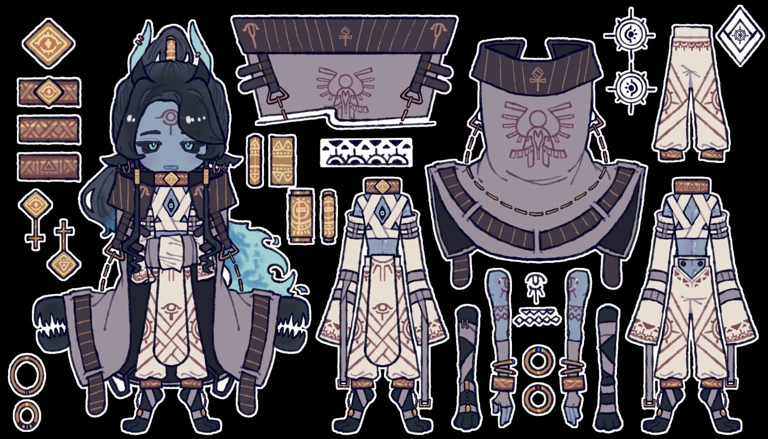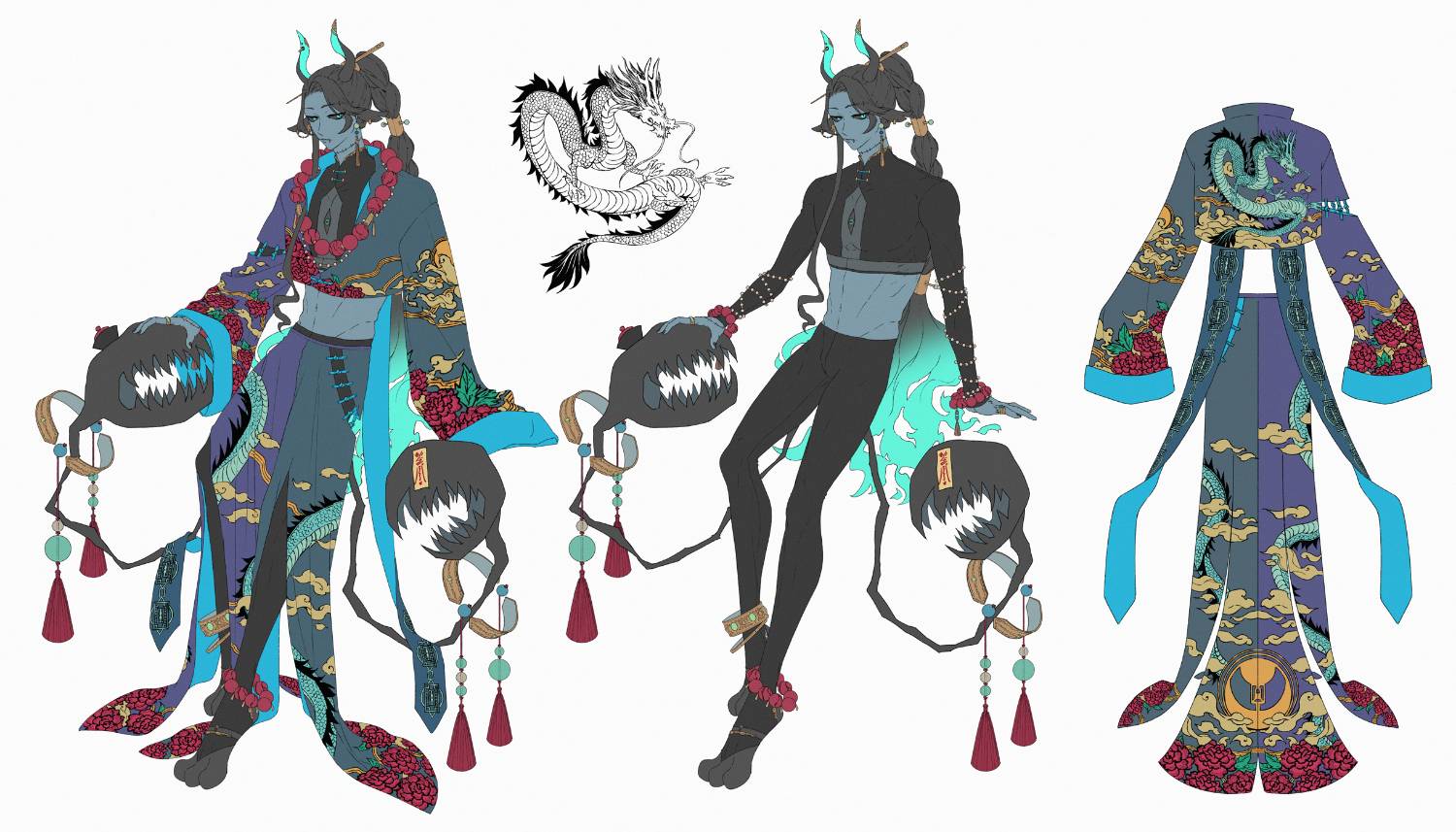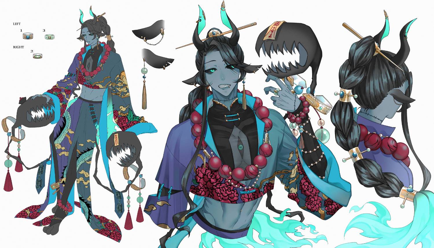 {%hackmd @themes/dracula %} <style> /* 修改整個頁面的"背景"與"字體"顏色 */ html, body, .ui-content { background: #191A1A; color: #FFFFFF; } </style> # **訃珥** * **(沒有特別說明的均是自繪)** * **換裝/服設不能再繪製(委託/轉蛋)請直接退** **【注意】** ○換裝 ╳女裝(除非我指定) ╳瓜主,蝴蝶小姐 ╳擅自脫衣服 ---  --- # 設定圖(請不要照抄立繪動作) </font> <font size=3 color=pink>有眉環(人物的左邊,你的這邊→),耳環,唇環,肚臍環,舌環 還有缺耳</font>   腿  外貌描述(檢查用): 1.劉海左撇,兩鬢第一層像蜘蛛腳勾著,第二層末端捲起。長髮到大腿,末端是鬼火 2.耳朵是鹿耳,左耳有缺角。兩邊均有三個耳洞(可以增加,移動位置),有肚臍環,舌環,唇環,眉釘 3.雙手以及脖子有縫線 4.胸前有眼睛(會動的生命體),在腰部也有兩個會動的黑色生命體,具有攻擊性 5.獸腳,鯊魚牙,藍色舌頭,黑色眼白 --- # **地獄三頭犬化**  繪師:起司蛙 --- # **簡單介紹:** * 性別:男 * 身高:175cm * 種族:鹿+惡魔+地獄三頭犬混血 * 職業:跟班 * 性格:天然呆,笨,不太會笑除(非吃到好吃的東西),發呆的時候會不自覺張開嘴巴 * 身材:精壯 * 喜歡:上司,蝴蝶,犬類,發呆,好吃的東西(什麼都可以吃,包括物體或者是靈魂) * 討厭:貓,泥土,洗澡 --- # **可參考用連結** :::spoiler **自繪圖參考(點擊展開)**  ::: --- **噗浪相關樓請不要按愛心,留言或者是投幣** * [可參考用圖集中](https://www.plurk.com/p/p7yx6x) --- # **換裝須知** 穿著(可隨意換裝):不喜歡穿鞋子 參考色系:藍,金,黑,紅,暗色系搭配一點熒光色 編髮:可隨意編髮但請不要改變長短,要保留鬼火 服裝參考方向:異域風情,西方,露膚度大OK * 雷點:綠色 --- # **衣櫃** ### 1.中華風 注意:如果因為項目限制(Q版、簡單塗鴉等)而需要簡化可以,但一般無限制的委託還是希望**盡量不要簡化**  拆分  褲子解釋  ><font size=1 color=gray>本體是正中間開衩(大概在膝蓋附近)的寬褲,正反面都一樣 站著的時候會因為布料的垂墜感、看起來像是一件完整的裙子(開衩也會不那麼明顯) 動起來的時候開衩會比較明顯,腿動作大一點、張開一點就能看出是褲子 兩腿各自都有完整的花紋,但是一般站著的時候,背後可以剛好合成一個完整的圖樣</font> [繪師:ray](https://www.plurk.com/raayyy) 使用範圍: **不能延伸設計、修改設計** 但如果因為想委的項目比較特殊,像是人物+衣物都會**花化、毛毛化、獸化這種,包含人物+整體造型都會一起調整的也可以** --- ### 2.禮服  繪師:冬粉鯨魚 使用範圍: 不能商用 可以委託/轉蛋,衣服飾品可以簡化,沒有繪製到的地方可自行延伸或其他人設計,印象轉蛋等也沒問題 --- ### 3.常服  繪師:煤 使用範圍: 衣服使用都沒限制,隨便用 --- ### 4.白情 忘記說少了眉環  繪師:不快樂小昆布 使用範圍: 隨便 --- ### 5.封塵之墓  繪師:威特 使用範圍: 可以自繪/委託/轉蛋,以上不要商用都可以隨意使用。 繪製時希望不要隨意更改設定和顏色,不過小Q可以省略部分沒有關係。 這個服裝有很高的自由度,可以自己隨意穿脫或是搭配,不用全部穿整齊也沒有關係。