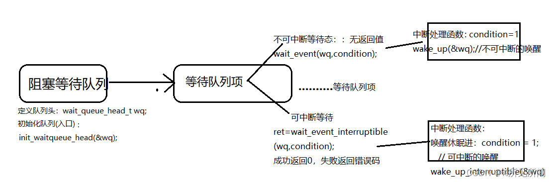> > > > [Linux等待队列(Wait Queue)](https://www.cnblogs.com/hueyxu/p/13745029.html)