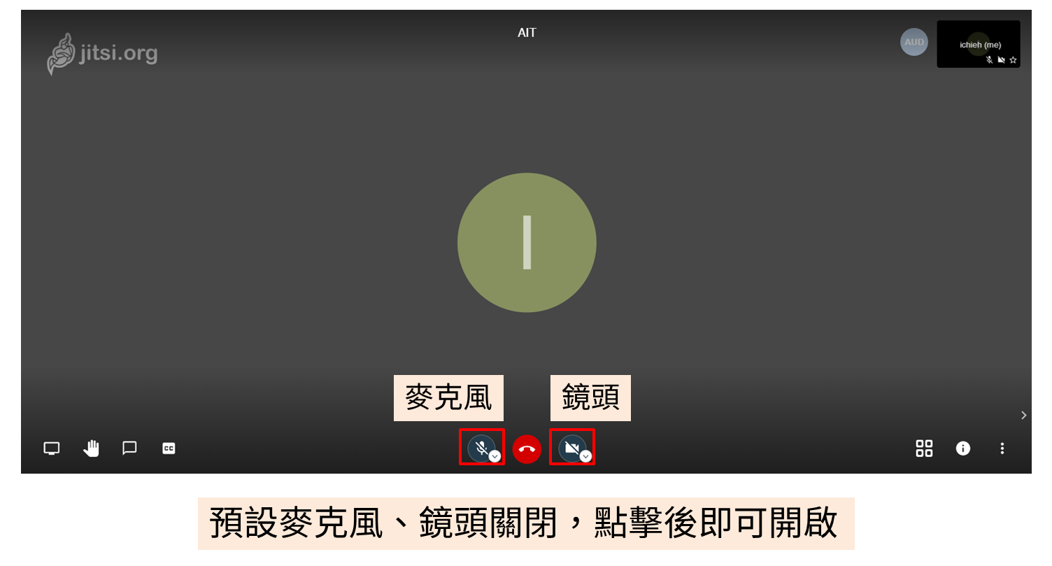 2. 需同意瀏覽器使用麥克風以及視訊鏡頭,麥克風、鏡頭會**預設關閉**