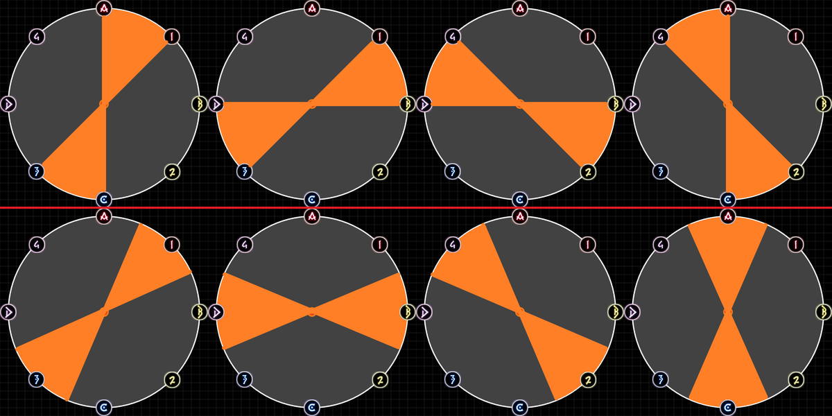 Phase1 オメガ == 優先度:H1 MT ST D1 D2 D3 D4 H2 ## サークルプログラム 對全員上debuff,只有擁有debuff的人可以踩塔 每次場上出兩塔,並且OMEGA會牽兩位玩家線,由於處理完線的人會有最大HP低下的debuff踩塔會死,因此依照debuff需要依照以下順序處理 塔:骰子1→骰子2→骰子3→骰子4 線:骰子3→骰子4→骰子1→骰子2 為了並且避免撞車,依照A開始順時針以及優先度去劃分處理踩塔/接線/放線 EX: H1跟D3都為骰子1,H1踩順時針第一個塔/第一條線/第一個安區放線;D3則為逆時針處理 ※塔不會出在正東/南/西/北,稍微偏一點也視為正點 初始為了方便接線,請MT面南開王或是讀條結束後集合  放線的人可以邊打BOSS邊放線,但需注意角度不要偏一邊,塔內的人也記得小心站太外面被波及 另外已經踩過塔的人可以進塔,不會觸發任何效果   由於最大HP低下debuff的關係,骰子3與骰子4的人塔判定前HP上限會恢復,治療上最為急迫 補師跟骰子3骰子4的人需注意位置,以免太遠補不到 最後切記非線處理者不要穿過BOSS腳下或是切西瓜 ## パントクラトル 本文採用1A式(被AOE追著跑的方式) 跟サークルプログラム一樣全員成對骰子,並且場地被切割成兩大安地 弊固定的狀況,以4為基準順時針第一個安地為北;第二個安地為南,並且按照優先度分配,高的在北低的在南 > パントクラトル安地全種類 Source: Fuyutsuki Exe > https://twitter.com/FuyutsukiExe/status/1618155202040967168 >  兩個扇形AOE會順時針or逆時針繞行,骰子2~4的人只需站在安地的中間等AOE繞過來就好 腳下出現AOE時,順著扇形AOE與目標圈繞行丟AOE  骰子1號先在夾角內待命,看到AOE順逆繞行之後將AOE外捨 骰子2~4則照順序,當分攤結束之後如附圖的方式從內側衝出去放置AOE,最後從外側繞回人群  > 參考影片 Source: みずがめさん > https://twitter.com/mzgm12/status/1617911410029383681 最後四個骰子與分攤處理結束後,BOSS會對最近的6人直線AOE攻擊與最遠的2人扇形大傷害 坦遠離目標圈接扇形傷害,補與DPS則站在目標圈裡面處理直線AOE 此處雙坦以無敵處理的話,後方空間夠大,可使用固定位置的方式處理直線AOE。 此機制對於全員的一致性頗為要求,骰子出去的時間點以及分攤的移動都會影響到躲AOE的順暢度  -完- ###### tags: `絶オメガ`
