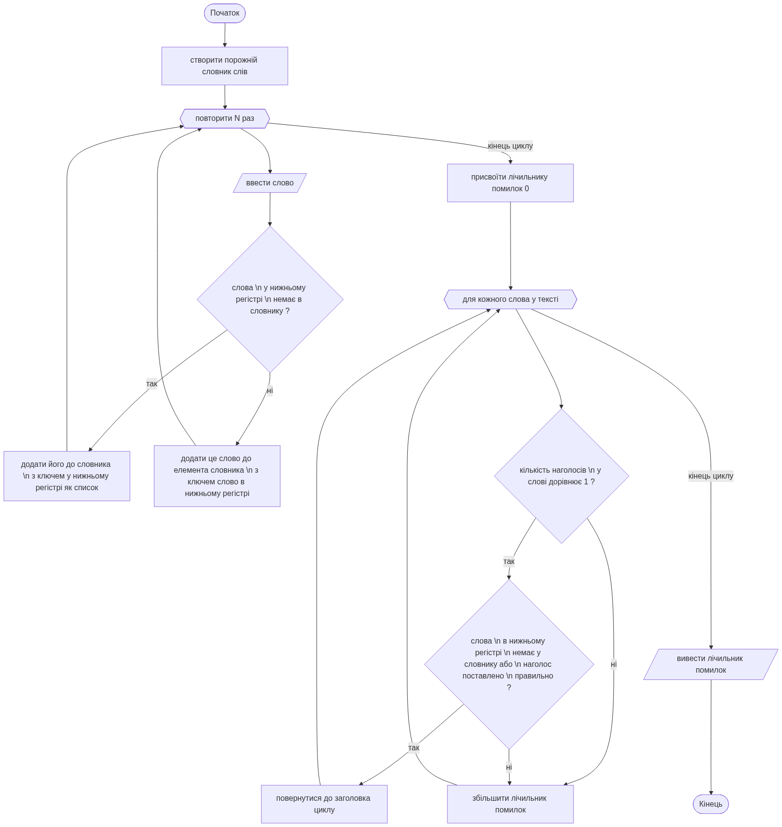 Вводиться спочатку число `N` - кількість слів у словнику.