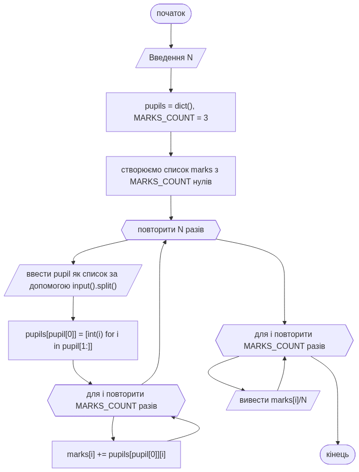 sum(pupils[pupil[0]]) / MARKS_COUNT))