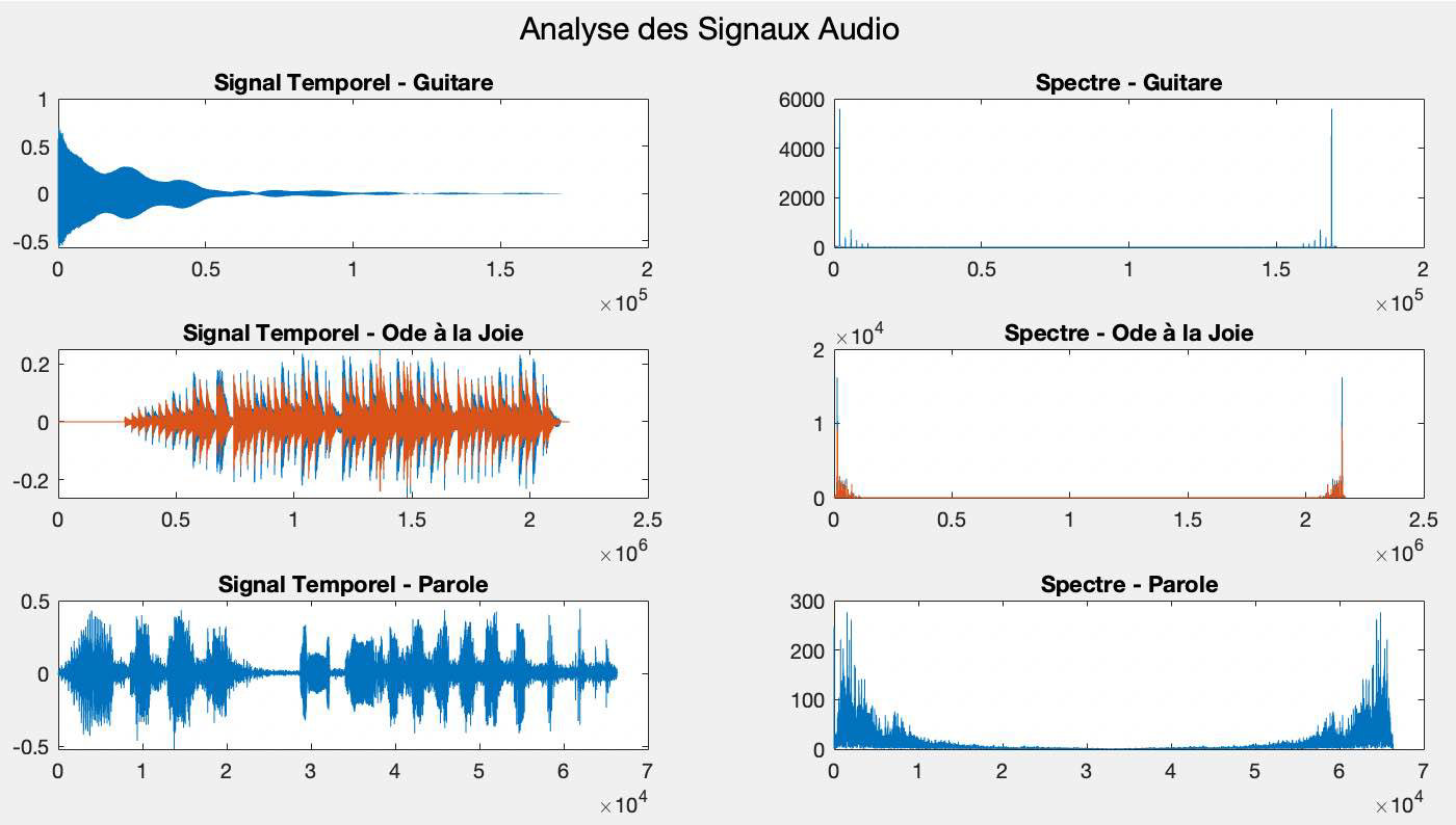 Le spectre fournit des détails sur les composantes fréquentielles du son, tandis que la vue temporelle montre la dynamique et le rythme du morceau.