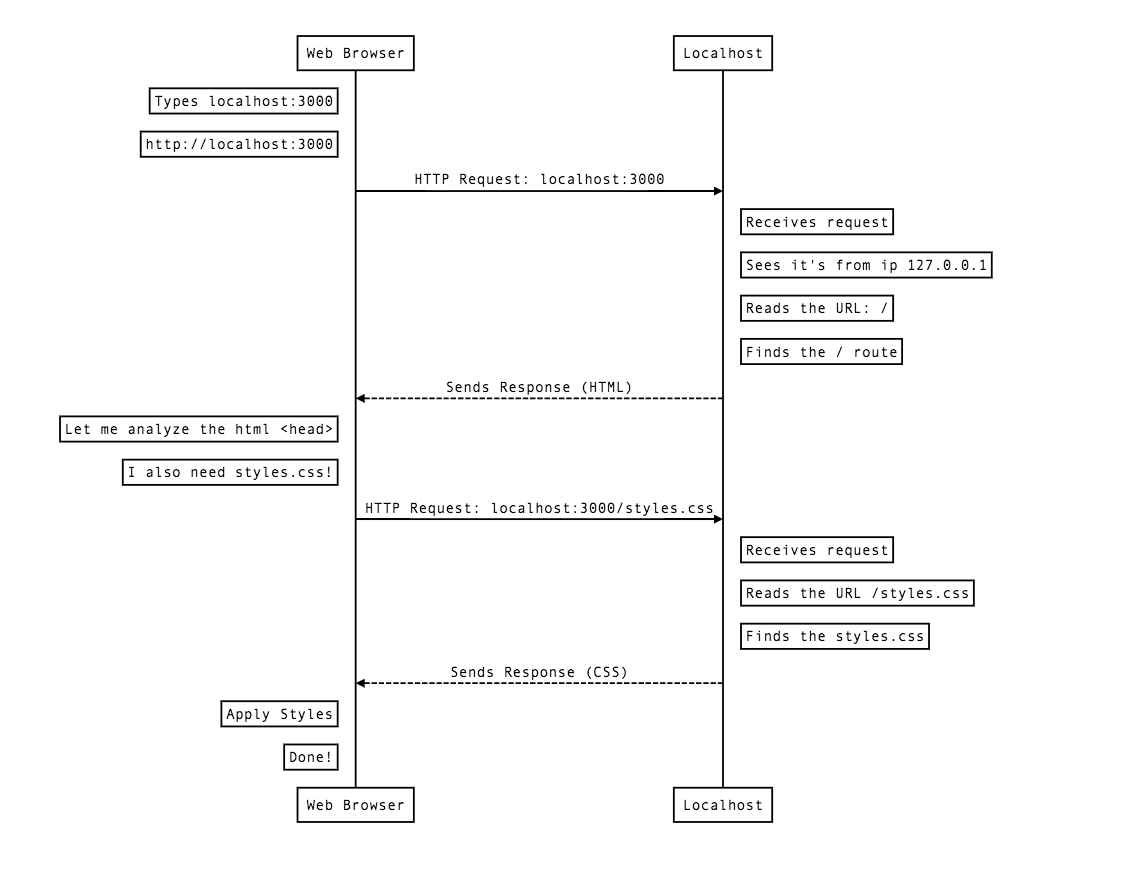 :zap: Couldn't we have placed the HTML files in `public/` and referred to them directly like [localhost:3000/cat-page.html](http://localhost:3000/cat-page.html)? Yes! But we will see later that this structure of having the **route refer to its HTML** will be useful later.