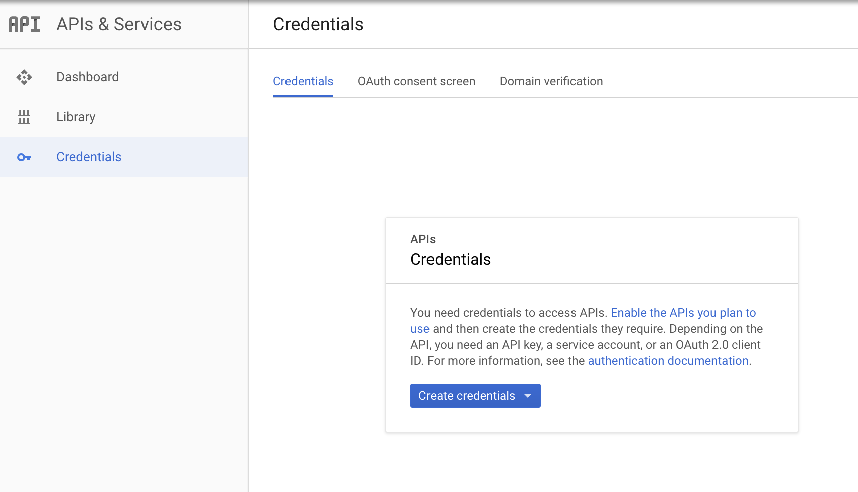 1. Once you go to the Google Developers Console website, click on the **Credentials** tab in the left vertical navigation bar: