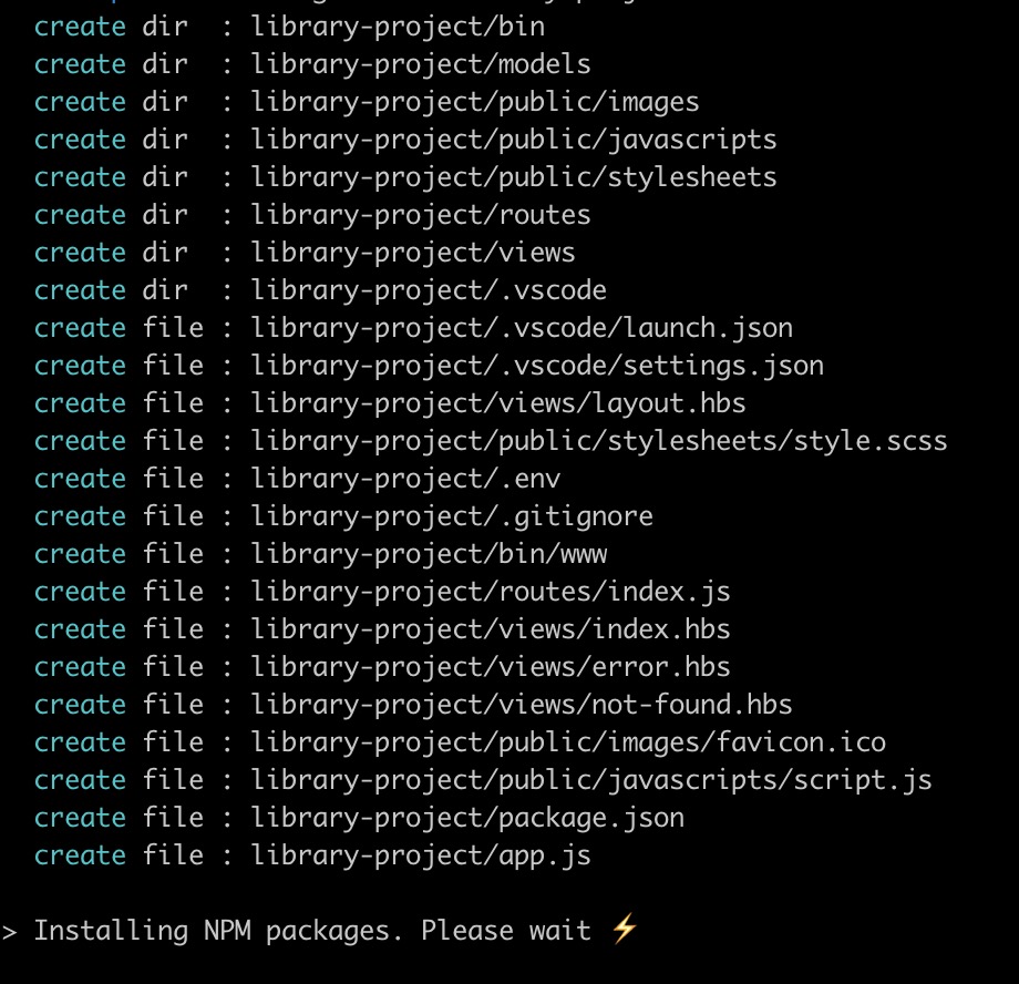Okay, so we created our first express app using irongenerator (**library-project**) and now we have to start adding the pieces and integrating them into our app.