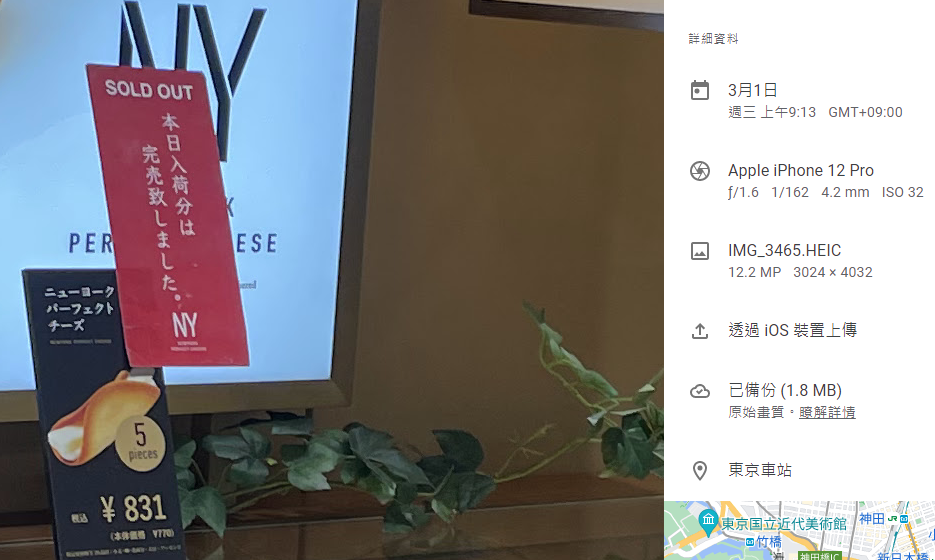 # 2023 - 日本東京遊記 * 早上六點從住處出發,搭乘早上九點的班機。使用Line Taxi機場接駁服務,車程約莫一小時。 * 早上7:50用完早餐,跟小戴合照。過機場安檢大概花了15分鐘 * 出成田機場後轉乘NEX特快車直達東京,但是列車上完全沒有販賣機,快渴死。  * 到了東京車站,剛下NEX列車第一件事情就是找販賣機買水。販賣機可以刷西瓜卡。  * 飯店住的是八重洲京王Presso INN (五星好評,超值飯店): * 四個晚上只要55404日圓,一個晚上當時匯率約莫3077台幣上下。 * <https://goo.gl/maps/qYE8yXJ8kvLexDR3A> * 睡超好  * 飯店早餐很陽春,但是真的住得很舒服  * 按照下圖,從飯店可以走進大樓,坐電扶梯到B1,可以找到星巴克。 * 左側是4號地下道入口,我們本來習慣走這個,但是後來發現右轉穿過雙重電動門,直接搭手扶梯往B1更方便。  * 晚餐隨便找了一間有定食的吃,因為我想吃熱熱的飯,但是最後找不到比較多蔬菜的,只好隨便吃個有雞肉的,選了南蠻雞想說會不會沒有炸,結果有炸 XD,而且太甜了。  * 反而老老實實點的炸雞餐比較好吃…  ## 2/28 * 隔天(2/28),我們買鴨川海洋世界套票,一個人6000日圓。包含門票\+往返接駁巴士。 * 上車地點在星巴克附近 * 車程大約2.5小時  * 從跨海大橋望向東京市  * 鴨川Sea World老實說設施比較老舊,但是海豚跟虎鯨的表演是完全值回票價。近距離看我們的海洋朋友賣力表演,無價。 * 非表演時間也能進場看工作人員跟海豚和虎鯨熱身的過程,可以買個小點心坐在觀眾席曬太陽看牠們,光是不清場這一點就讓人覺得很超值。加上非假日遊客沒有很多,非常悠哉的行程。 * 海天一色的Sea World,坐前面的勇者全套雨衣,虎鯨能把水潑到倒數第二排。 * 虎鯨已經是保育類,看一場少一場。大家多去看牠們,幫牠們加雞腿。  * 我們看了13:30的海豚表演,馬上接著跑去隔壁看14:00的虎鯨表演。每個表演大概25\~30分鐘內結束。看完之後去園內的Ocean餐廳吃飯,餐點真心soso,但是可以近距離看虎鯨游來游去,覺得餐廳把價位跟品質抓得很….對他們來說很完美 XD,看在虎鯨的份上覺得還可以,餐廳的廁所也蠻乾淨的。  * 回程由於下班的車潮,大概需要坐三小時到東京車站。非假日的巴士很空曠。 * 回到東京車站已經七點了,不想晚上吃太多難消化,選了東京車站一番街裏頭的拉麵。 * 一番街一堆拉麵店,生意都很好,感覺就是平價仔的共同選擇。  * 晚餐後去吃果實園,店內都是一堆妹子。  * NY pefect cheese攻略 * 隔天一早八點半,直衝NY perfect cheese。 * 下圖藍色路線是網友畫的,但是我們走的實際上是橘色路線,從比較靠近我們飯店的八重洲南口無腦直走,很快就能看到一堆人在排隊的NY perfect cheese,早上八點就開店,最小盒的九點就可能完售。  * 早上九點剛過,就貼出5入(最小盒)的完售公告了  * Godiva cafe拿鐵超好喝,又便宜。 * 為了找個地方吃早餐,我們隨緣進了Godiva cafe。沒想到這家的拿鐵爆打星巴克。 * 星巴克一杯tall size拿鐵要價830日圓,Godiva cafe一杯比tall size稍微大一點的拿鐵只要530日圓,而且外帶還能再節省10日圓(店內要被課消費稅10%)。 * 兩杯只要1060日圓,折合台幣等於一杯只要120台幣。在東京車站,這樣的物價,這樣的品質,非常的暴力。而且這家店的對面就是星巴克,你可以去對面星巴克喝看看,保證你會覺得自己是盤子。  ## 3/1 * 算是此趟東京旅行的休息日,行程比較悠閒。早上只吃了NY perfect cheese充當早餐,所以中午我們吃好一點,來到四代目菊川吃鰻魚飯。 * 2023的今天,一本鰻要價5180,哭阿  * 老婆吃的是小碗的  * 天氣超好的東京車站,拍攝點在丸之內五樓免費觀景台:  * 在丸之內三樓吃HARBS,跟果實園一樣是妹子店,一堆妹子。 * HARBS: <https://goo.gl/maps/ZZgeANZY1g6SWmjLA> * 我們點了這兩個:  * 幾天沒吃到蔬菜了,晚上選了沖繩料理,爆吃蔬菜 * 海人酒場: <https://goo.gl/maps/22ZRksn89k8fNUe28> * 價格便宜,鍋氣很足,偏鹹,適合下酒。少數有大量蔬菜的餐廳。可以用手機QR code點餐,系統類似鼎泰豐點餐系統 * 沖繩煎餃  * 熱飲箱,我每次看到這個都覺得會不會不斷釋放塑化劑到飲料中….  ## 3/2 - Disney Sea GoGo * 上午天氣還很不錯的迪士尼海洋 * * 下午就………..有點飄稀疏的雨,雲層很厚 *  * 排了90分鐘的印第安那瓊斯才看到的起點洞口 * 很想問這些年輕人,你們真的知道什麼是印第安那瓊斯嗎 XD  * Horizon Bay Restaurant(編號63),提供很貴的米妮套餐,而且預設是牛肉排套餐,語言不通下要換主菜很痛苦,建議備妥google translate給工作人員看翻譯好的日文比較方便客製  * 冬天入夜後的Disney Sea冷到哭,風超級大,Horizon Bay燈光很昏暗,而且因為更換主菜不太順利,讓我不是很想在裏頭待太久,餐點也很普通老實說…,覺得吃垃圾食物應該會更便宜而且開心 XD * 可以接受垃圾食物的話,下圖是入夜後的綠洲! 編號48的New York Deli !! * 超級高的CP值,點一杯飲料跟一份薯條就能躲到七點半,想看煙火的話,我覺得這是煙火前6pm to 7pm的完美避風港  ## 3/3 回家\~\~ 回程的天氣很棒,在飛機上捕獲富士山 🥰🥰🥰