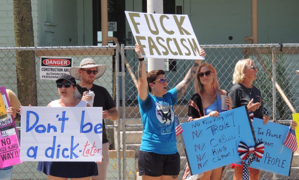 *Local DeLand residents participating in the June 14 No Kings demonstration, showing the community engagement that characterized the day*