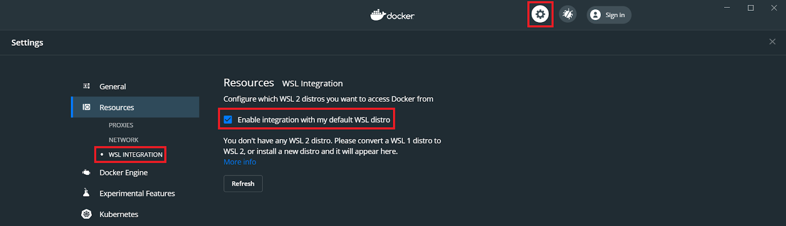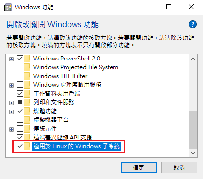 # WSL (Windows Subsystem for Linux) + Docker ###### tags: `Docker` `WSL` ## SOP ### 允許Hyper-V + 安裝WSL 1. 控制台 => 程式集 => 程式和功能 => 開啟或關閉Windows功能  2. 適用於Linux的Windows子系統 => 打勾  3. Hyper-V => 打勾  4. 重開機 ### 更新至WSL2並將其設為預設 5. 到以下連結下載wsl_update_x64.msi並且執行安裝 https://wslstorestorage.blob.core.windows.net/wslblob/wsl_update_x64.msi 6. 使用使用者權限打開powershell後並且下指令將WSL2設為預設 ```javascript= wsl --set-default-version 2 ``` ### 安裝docker desktop 7. 到以下連結下載docker windows並且執行安裝 https://hub.docker.com/editions/community/docker-ce-desktop-windows/ 8. 安裝時把能打勾的全打勾 9. 安裝完docker後進去設定頁面,將Use the WSL 2 based engine打勾  10. 進去設定頁面,將Use the WSL 2 based engine打勾  ### 安裝Windows Terminal 11. 到以下連結取得並安裝Windows Terminal https://www.microsoft.com/zh-tw/p/windows-terminal/9n0dx20hk701?activetab=pivot:overviewtab ### 執行docker container 12. 使用管理者權限打開Windows Terminal 13. 即可在Windows Terminal下docker指令運行docker ## 參考資料 1. https://medium.com/@misscoming/%E5%9C%A8-windows-10-%E4%B8%8A%E8%B7%91-ubuntu-18-04-92f80b2d725b 2. https://marcus116.blogspot.com/2019/02/chocolatey-windows-chocolatey.html 3. https://dev.to/kapilgorve/move-install-wsl-distro-from-c-drive-to-another-drive-19g9 4. https://medium.com/%E4%B8%80%E5%80%8B%E5%B0%8F%E5%B0%8F%E5%B7%A5%E7%A8%8B%E5%B8%AB%E7%9A%84%E9%9A%A8%E6%89%8B%E7%AD%86%E8%A8%98/wsl-%E8%88%87-windows-%E7%9A%84%E5%AE%8C%E7%BE%8E%E9%9B%99%E7%B5%90%E5%90%88-%E5%9C%A8wsl-%E4%B8%AD%E5%AE%89%E8%A3%9D-docker-e722e87ffa3b 5. https://docs.microsoft.com/zh-tw/windows/wsl/install-win10#step-4---download-the-linux-kernel-update-package 6. https://www.cnblogs.com/xhznl/p/13184398.html 7. https://samkuo.me/post/2020/04/dev-env-docker-wsl2-k3d-vs-code/ 8. https://www.microsoft.com/zh-tw/p/windows-terminal/9n0dx20hk701?activetab=pivot:overviewtab
