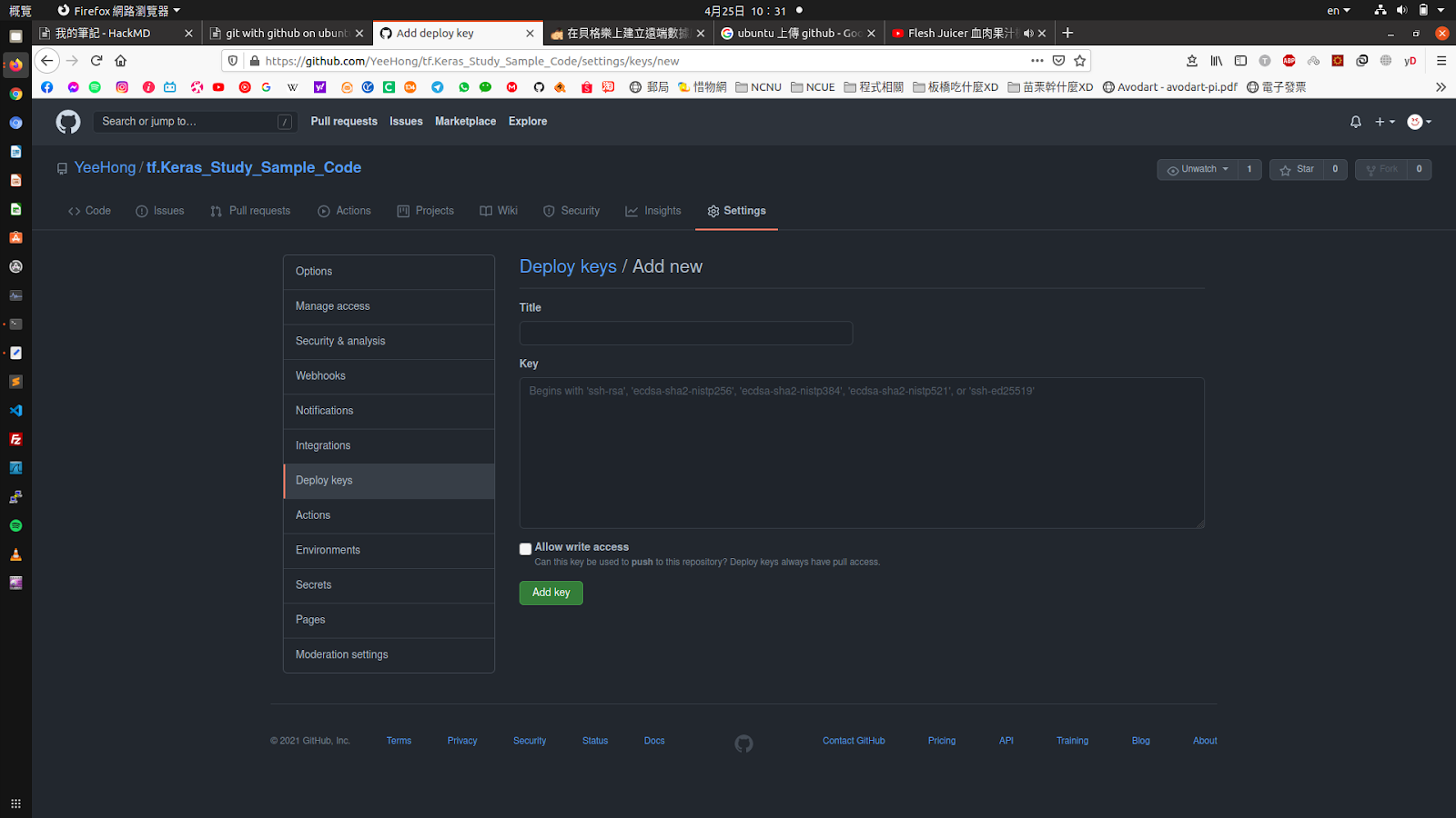 2. click "Deploy keys" item at the item list of left