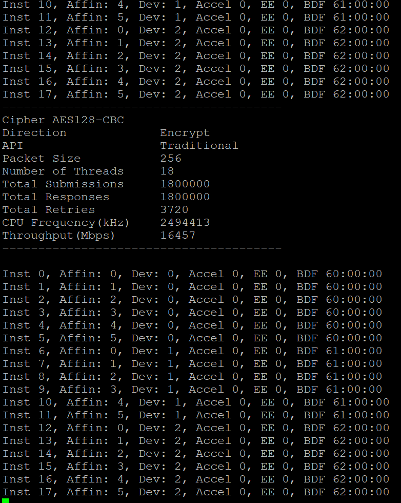 You can get the test results of all the preset algorithms, but there are two results, API show Traditional, It’s not the QAT test result.