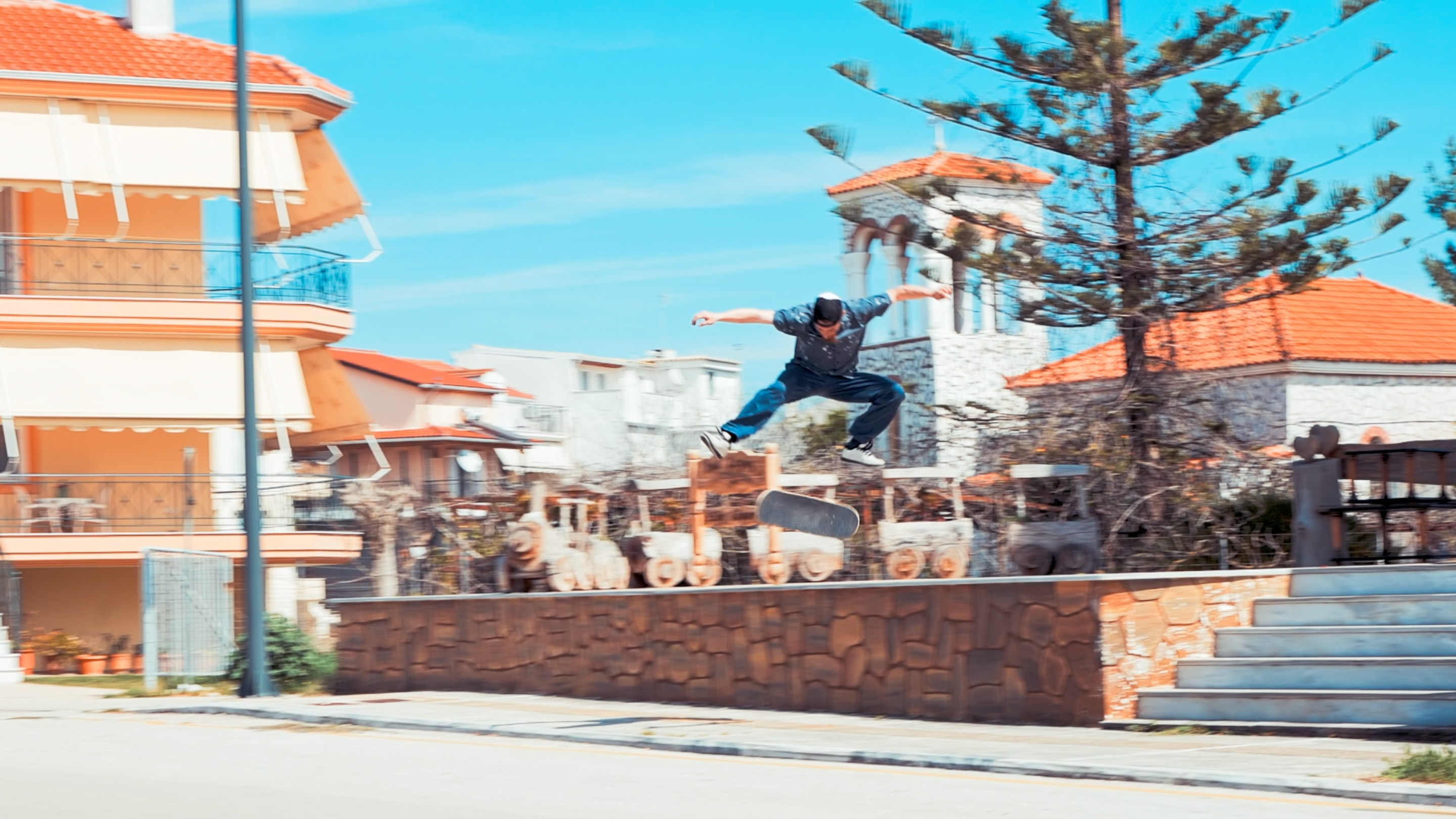 Our goal was not to deliver a super heavy video part full of "hammers" but instead showcase the beauty of Greece via Andreas' lenses and my spot selection, as well as my skateboarding creativity!
