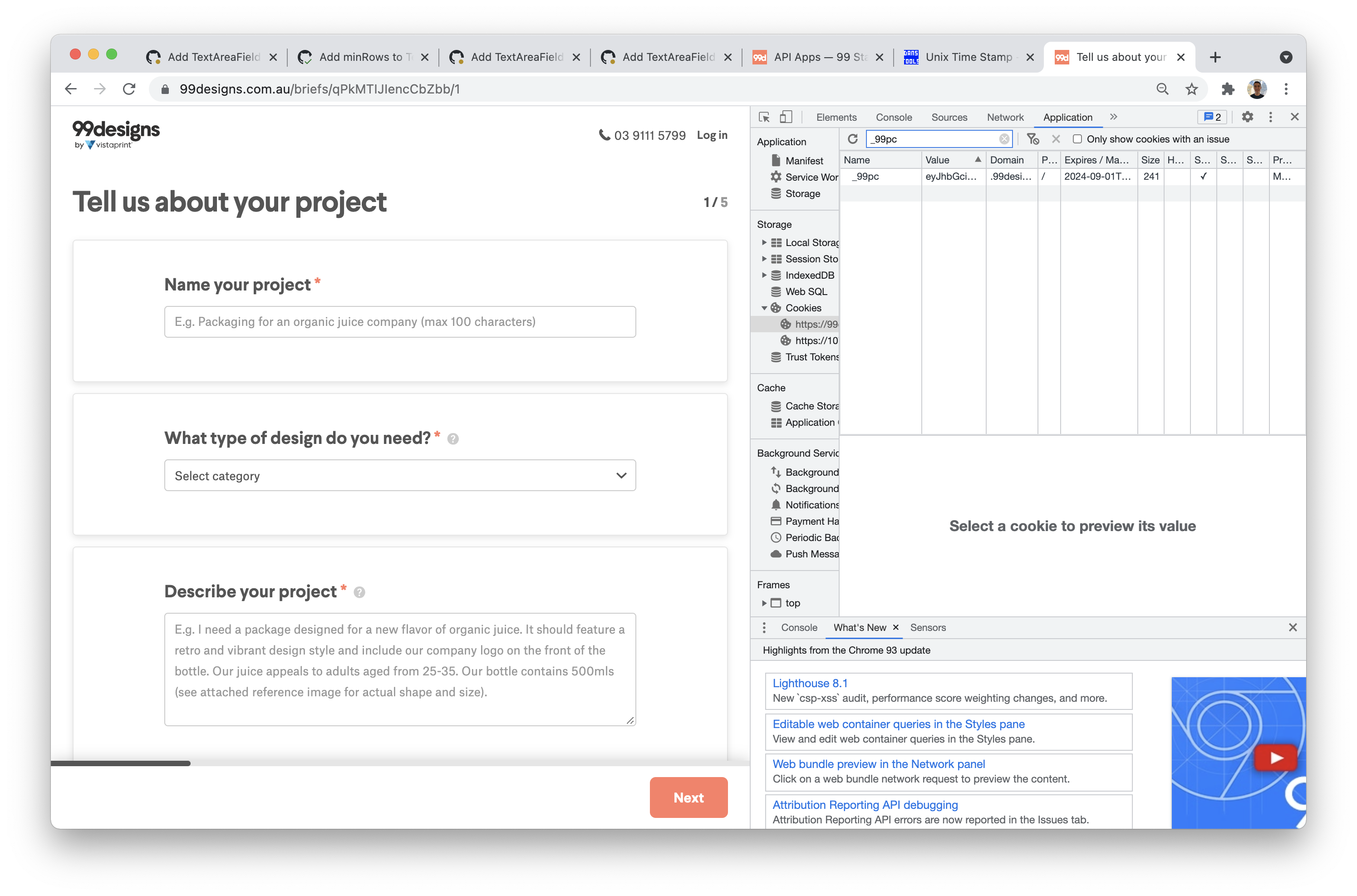 1. Pass in incorrect `pc` query param and make GET request to https://99designs.com.au/?pc=vulnerability