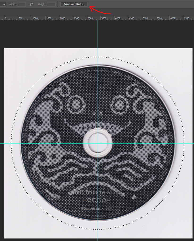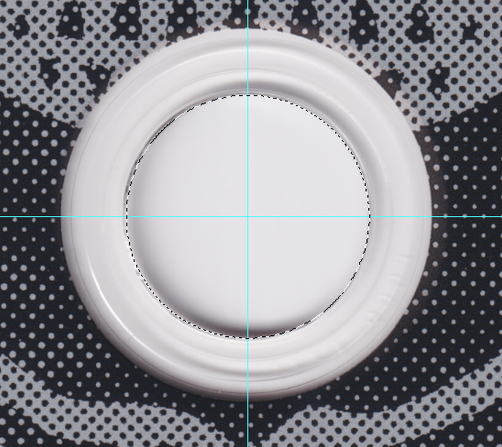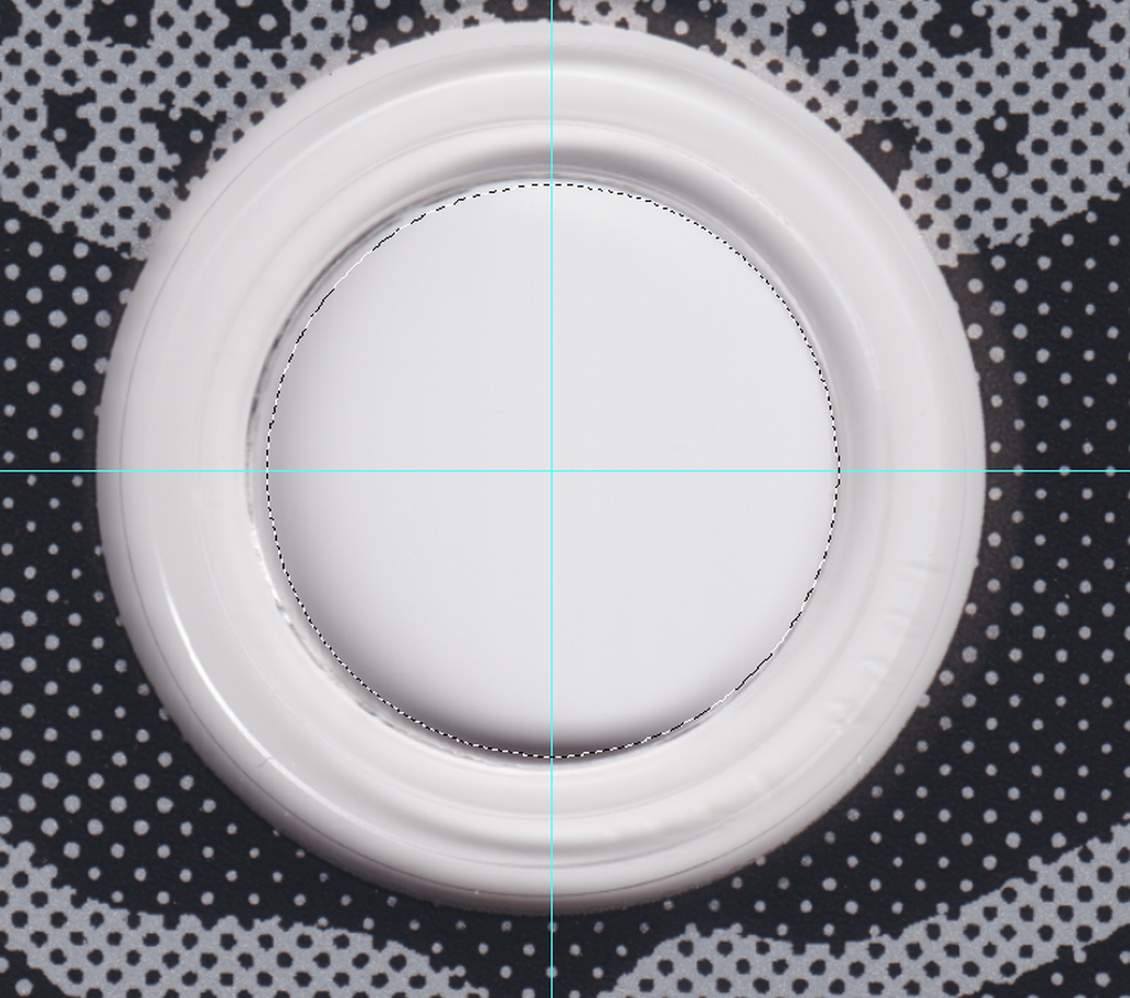 When it touch all 4 intersections, zoom out. Using the same method with `Elliptical Marquee Tool (M)` and select the whole disc keeping some padding spaces.