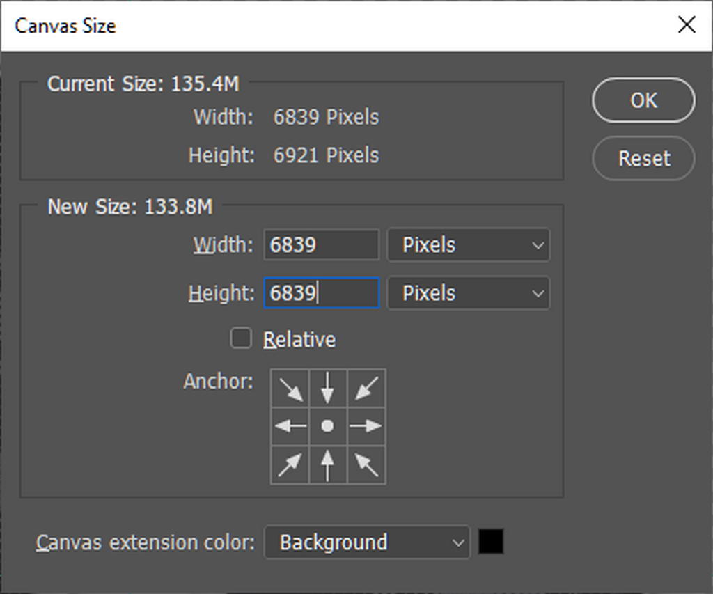 Next, Press `Ctrl + Alt + C` to update the canvas size and making it as a square image.