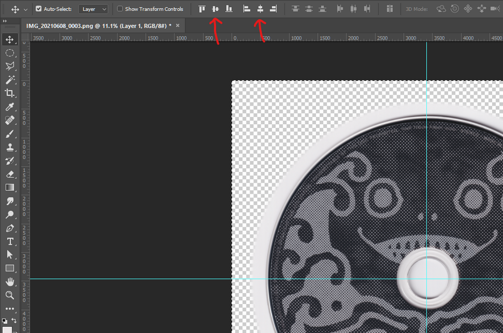 Then on disc only layer. Press `Ctrl + A` to select all and press `V` to change to `Move Tool (V)` and align it to center of the image with these two buttons.