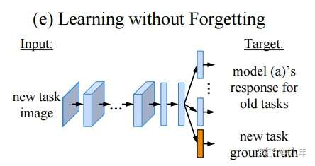 lifelong learning 筆記 === # 各式 lifelong learning - [Awesome Incremental Learning / Lifelong learning (paper+code)](https://github.com/xialeiliu/Awesome-Incremental-Learning) - [continual-learning code](https://github.com/GMvandeVen/continual-learning) ## papers - selfless sequential learning, ICLR 2019 ([code](https://github.com/rahafaljundi/Selfless-Sequential-Learning)) - On Training Recurrent Neural Networks for Lifelong Learning, NeurIPS Continual Learning Workshop 2018 # Three scenarios for lifelong learning, NeurIPS Continual Learning Workshop 2018 ## 2 Three Continual Learning Scenarios 1. Task Incremental Learning 2. Domain Incremental Learning 3. Class Incremental Learning  ## 3 Strategies for Continual Learning ### 3.1 Task-specific Components 對每個 task 不優化整個 network,可以減緩 catastrophic forgetting。然而這種 approach 只能用於 Task-IL scenario 論文 - (Context-dependent Gating, **XdG**) Alleviating catastrophic forgetting using context-dependent gating and synaptic stabilization. 2018 - 隨機指定應該參與某 task 的 node - Evolution channels gradient descent in super neural networks. 2017 - 用 evolutionary algorithms 來學習每個 task 應該用哪些 units - Overcoming catastrophic forgetting with hard attention to the task. 2018 - 用 gradient descent 解每個 task 應該用哪些 units ### 3.2 Regularized Optimization 當 task identity 的資訊在 test time 不再可用,一個 strategy 是對 parameter 做 regularize,計算 paremeter 的重要性,並且對重要 parameter 的改變作出懲罰。 論文 - (**EWC**, Elastic Weight Consolidation) Overcoming catastrophic forgetting in neural networks. 2017 - 用 parameter 的二次微分來評估重要性 - $L'(\theta) = L(\theta) + \lambda\sum_\limits i b_i(\theta_i-\theta_i^b)^2$ - (**SI**, Synaptic Intelligence) Continual learning through synaptic intelligence. ICML 2017 ### 3.3 Modifying Training Data 論文 - (**LwF**) Learning without Forgetting, ECCV 2016, TPAMI 2017 - 使用當前任務的 data + 之前任務的 predicted soft target - 示意圖: - 演算法: - (**DGR**) Continual learning with deep generative replay. NIPS 2017 - 對每個 task 的資料都另外 train 一個 generative model,這樣就可以產生之前 task 的資料以及 hard target - **合併 DGR 以及 distillation** 的 approach,產生的 input sample 會和 soft target 配對 - Incremental classifier learning with generative adversarial networks. 2018 - A strategy for an uncompromising incremental learner. 2017 - 儲存之前 task 的 data,如此的 "exact replay" 能夠增強 continual learning 的 performance - **iCaRL**: Incremental classifier and representation learning. CVPR 2017 - 使用 Nearest-Mean-of-Examplars classification - CNN 是 feature extractor,對舊 class 選出的部分 data (examplars) 和新的 class 的 data 都計算 feature map 的平均值,然後有新的 image 進來就 extract feature 並看它和哪個 class 的 mean 最接近,就預測成哪個 class - Variational continual learning. 2017 - Fearnet: Brain-inspired model for incremental learning. ICLR 2018 ###### tags: `lifelong learning`