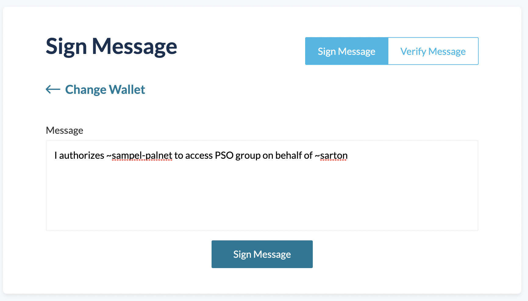 3. Sign a messages that specifies which ship can access the group using the ownership key of your star