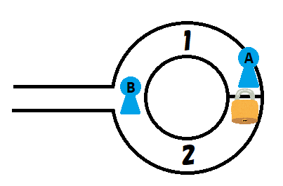 3. Aliceは、必要に応じて鍵を使って、指定された方から出る