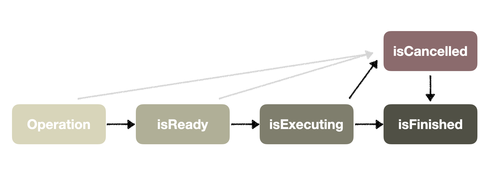 - Operation은 현재 실행중이 Operation은 동작을 직접 취소하는 것이 아니라 isCancelled 프로퍼티의 값을 True로 변경해줍니다. 따라서 isCancelled 프로퍼티를 추적해서 작업을 관리합니다.