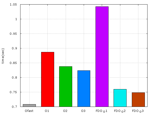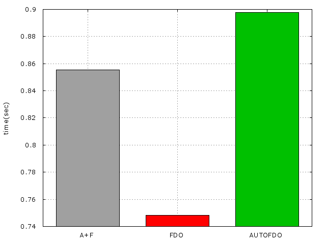 由這個結果可見兩個一起使用的時間並不會比單獨使用FDO來的快,但卻比單獨使用AUTOFDO來的快