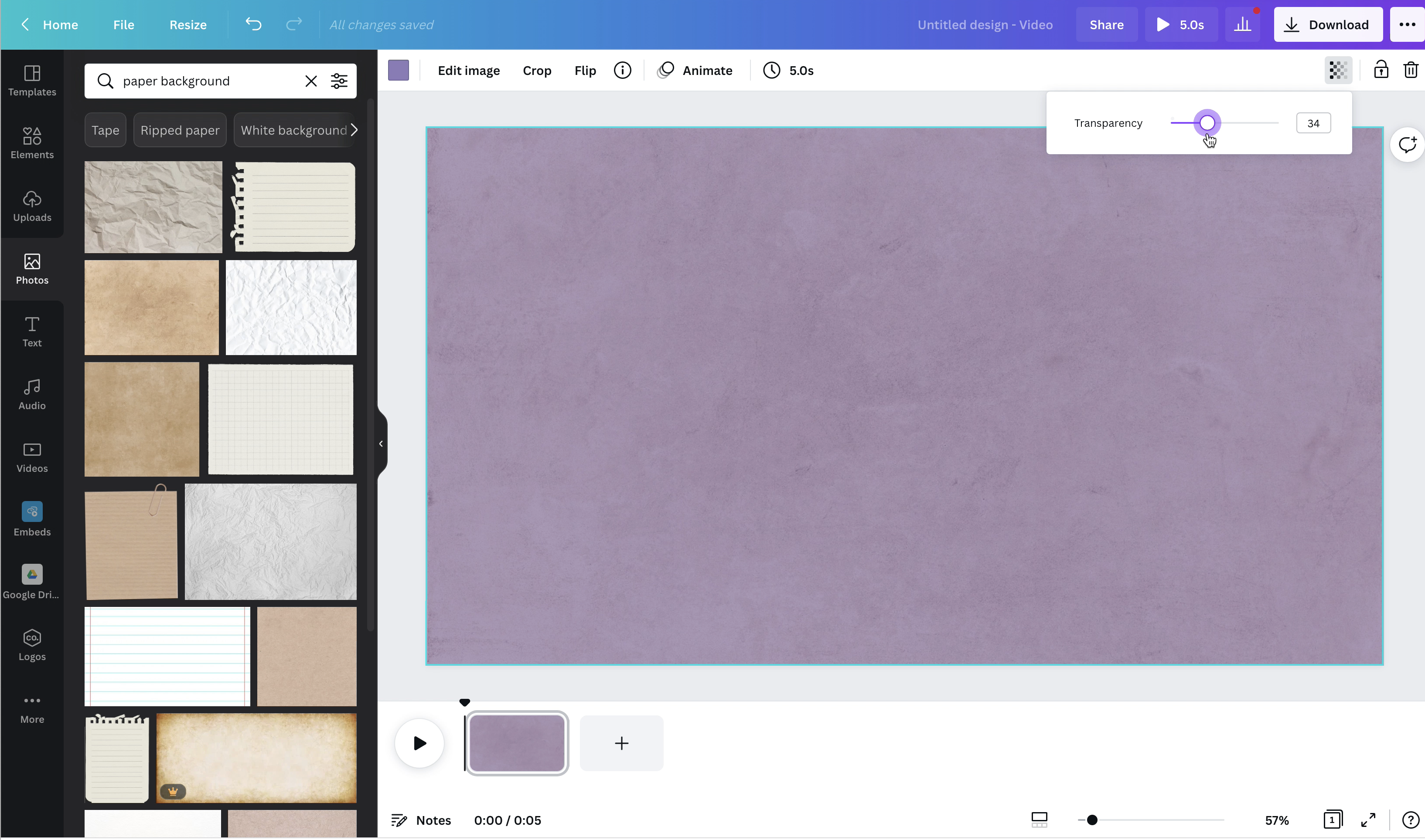 3. add texture to background. In photos, search for texture. drag and drop to fill frame. adjust transparency to desired effect.
