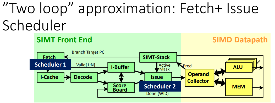 - 包括標記為 I-Buffer、Scoreboard、Issue 和 SIMT stack 的區塊。