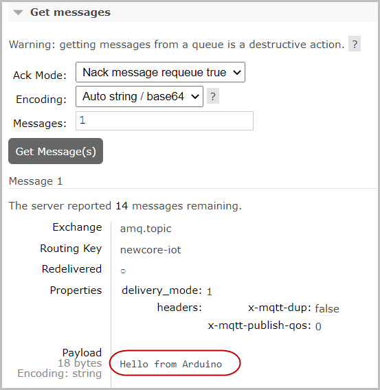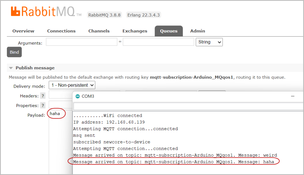 --- tags: 新人資訊 GA: G-YWCCFEGXSJ --- [新人資訊](https://hackmd.io/@newman/portal-info) # 技術-開發板 #3-在 Arduino 實作 MQTT Client 在上一回合中已經搞定網路連線部分,接下來準備往雲端丟資料了,怎們丟呢?大體上有兩種,頻繁而少量的適合用 MQ 這種較輕量化的通信協定,資料大一點且搭配即時運算邏輯的則採用 REST Api,但它的 Server 端占用資源較多而不適合很頻繁的呼叫。從此篇文章 (https://funprojects.blog/2018/12/07/rabbitmq-for-iot/) 我才了解,MQ 又分最輕量化的 MQTT 和稍微複雜的 AMQP,而這三種 Rabbit MQ 全部支援,因此我申請了雲端的 Rabbit MQ (https://www.cloudamqp.com/) 來實驗,先把雲端環境準備好,如下 Little Lemur 免費方案額度超大,實驗用綽綽有餘。  隨意建一個 instance,命名為 newmanMessage  點選 newmanMessage 顯示詳細資料中,有一個 MQTT 屬性區塊,記好這四個欄位,client 連線需要指定的。  進到 newmanMessage 的管理介面,建立一個 Queue 命名為 newcore-iot  在 Exchange 頁籤中的 amq.topic 建立一個新的 Routing key newcore-iot 導到剛剛建立的 queue   按下 Bind 之後該區塊出現 Binding 成功的圖樣,newcore-iot 也必須記住,client 需要用到。  現在開始寫 Arduino 端的程式,之前為了 wifi client 而寫的程式必須保留,因為它是連線的基礎。另外 include 必要的函示庫 (這是內建,不用安裝),設好幾的常數存放 MQTT 所需要的參數值,並做 Global 變數型別宣告。  主程式流程先執行連網動作,再執行 mq 連線,連練都完成後執行一次發布訊息和訂閱一個 topic newcore-to-device,預期功用是擔任 server 傳送指令給裝置端的重要樞紐。   從 COM Port 監視視窗中已經確認 WiFi 連線成功後,MQTT 也成功了,下一步就是到雲端平台去看看吧。  雲端平台果然顯示有訊息傳入,執行 Get Message 確認內容「Hello from Arduino」無誤,Arduino 已經與雲端的 Rabbit MQ 溝通成功了。   以上發送訊息部分很單純如預期,但「訂閱」訊息的行為非常怪異,程式連線成功後會自動建立一個 queue,也非我指定的 newcore-to-device 反倒出現以下一個怪怪的 queue,預設板子離線後就會消失,後來我把 clean session 參數指定為 false 後,則此 queue 可持續存留,在此發送訊息會順利觸發 callback(),勉強算有測通,但掌握度還差。   邁向 IoT 系統又前進一小步,接下來還要測通 REST Api,然後還需要回頭把 MQ 機制搞的更清楚,此通訊模式在物連網系統中的角色算是相當吃重。 By Newman Chen 2022/4/11 Updeated 「Subscription part」at 2022/5/4 參考資料: https://funprojects.blog/2018/12/07/rabbitmq-for-iot/ https://www.cloudamqp.com/