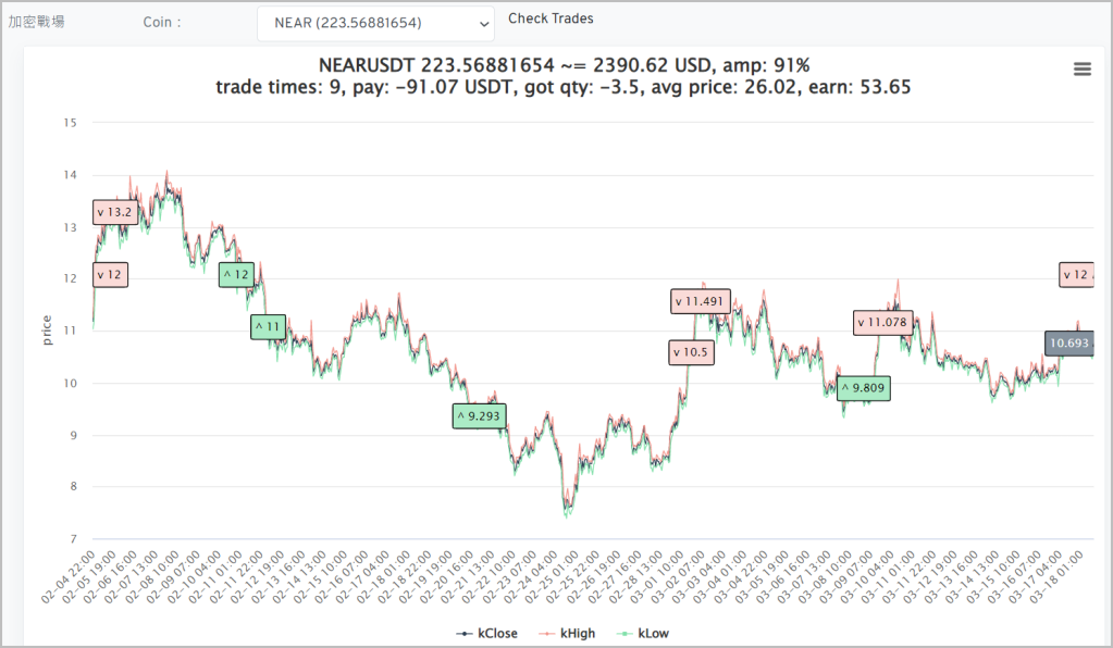 --- tags: 新人資訊 GA: G-YWCCFEGXSJ --- [新人資訊](https://hackmd.io/@newman/portal-info) # 技術-後台類-azure function #8-連上幣安api 對於技術和風險愛好者來說,幣圈的瘋狂事蹟很難不被吸引,大家入圈原因各有不同,個人技術水準還不到參與項目開發,但對於量化交易的開放和便利性則很對味,經過幾個月的探索,逐步摸進了幣安交易所提供的 api,功能強大效率快,一點不囉嗦歡迎上擂台比身手的感覺。基於 azure function + python 賜給我的堅實基礎,讓我可以向外伸出觸角探索世界,就來記錄一下。 在幣安的帳戶管理中點選創建新 api,即刻生成可立即使用。  搜尋一下相關的 python + binance 竟然出現好幾種 SDK,真是生態蓬勃發展中,我選擇從官網連結的 binance-connector,在 python 環境中執行 pip install binance-connector 後就已經完全準備好了。 簡單下幾行指令,已經確認抓到帳戶資料了,帳戶裡有甚麼幣通通正確抓出。   確認帳戶資產正確後,要開始交易必須先取得行情報價,因此下一步想要取得即時 K 線資料,經查也是一個簡單的呼叫就行了,幣安對開發者真是太友善了,反而問題出在自己對系統架構的設計,是要用同一個 function 傳回多項資訊 (帳戶餘額 and 即時 K 線),還是分成不同的 function 處理?這當然各有利弊,試了才知道,趁機學習一下傳回包含兩個陣列的複雜 json 物件是否可行。目前採用 dataframe.to_json() 雖然好用,但若要包進另一個 list 則不可行,所以腦筋動到 json.dumps() 身上,試試多層次巢狀物件次否可以運作,竟然一試就成功。如以下 crpto_info 物件 (大括號開頭) 的下一層的 balance 屬性,其值為中括號代表的陣列,如此已經預備好可以包進第二個屬性,用來儲存 K 線資訊。   將取得 K 線的功能設計成一個子程序,傳回 list of dictionaries,因 dataframe 並不支援 json serialize 所以必須執行 to_dict(),另外 datetime 型態也不行,故暫緩在此轉換格式。成功傳回 json 字串,因為物件結構已經比較複雜了,直接看序列化資料非常痛苦,好在有好用的工具 online json viewer 可幫忙分析成完美的樹狀結構層層展開,真是太棒了。     接下來一步一步趨近交易實戰,資訊透明必須先達到,面對密密麻麻的交易紀錄,要看出操作績效真是太難,通常只知淨值劇烈波動,然後無從檢討操作方法,因此我想若是能將交易紀錄標示在 K 線上,應該對檢討績效精進方法有幫助,查一下文件果然也是非常簡單,呼叫 my_trades() 即得,資料已經順利的包進函數的回傳物件裡了。   這兩項資料就位後,要有效解讀就必須調用適當的圖表。傳回前端用網頁呈現一定是最方便的了,但我想先用互動式 python 畫畫看,以便快速檢視結果,若效果良好再製作網頁,達到 do anywhere 的境界。用 matplotlib 簡單的線條和標註呈現,買進紅色賣出綠色,效果非常良好,在 1000 小時中的買進賣出價位清楚標示,且可算出淨買賣金額和價格,完全可以表達這 1000 小時的操作績效。如下表示共經過 29 回合的交易,收到 123.81 USDT,結餘 0.5 單位 AR Coin,價格為 -247.62 USDT (得到 0.5 單位 AR Coin 不須花錢,市場還以 247 USDT 價格倒貼我!),以最新市價 31.22 比較,假設如果做對應數量賣出沖銷 0.5 單位,庫存數回歸 1000 小時前的狀態,則可實現損益 139.42 USDT。  By Newman Chen 2022/3/14 後記:上圖只要十幾二十行的 python code 就可以搞定,其實這樣我自己用就很可以了,但還是手癢想挑戰一下網頁,沒想到這一試就花了超過 10 倍的時間,前端的技術實在太多樣了,但無論如何還是還是把以下的網頁搞定了,過程過於瑣碎實在很難紀錄,我也理解到前端工程師真是很難的職業。也許還會是另一種解法,就是用 python 在後端產生圖表,用靜態圖檔的方式給網頁參照,也許更能利用到 python 的圖表優勢,目前先這樣囉。此工具已經很好用了,先體驗一陣子再說。  By Newman Chen 2022/3/16 參考資料 https://binance-docs.github.io/apidocs/spot/en/#api-library http://jsonviewer.stack.hu/