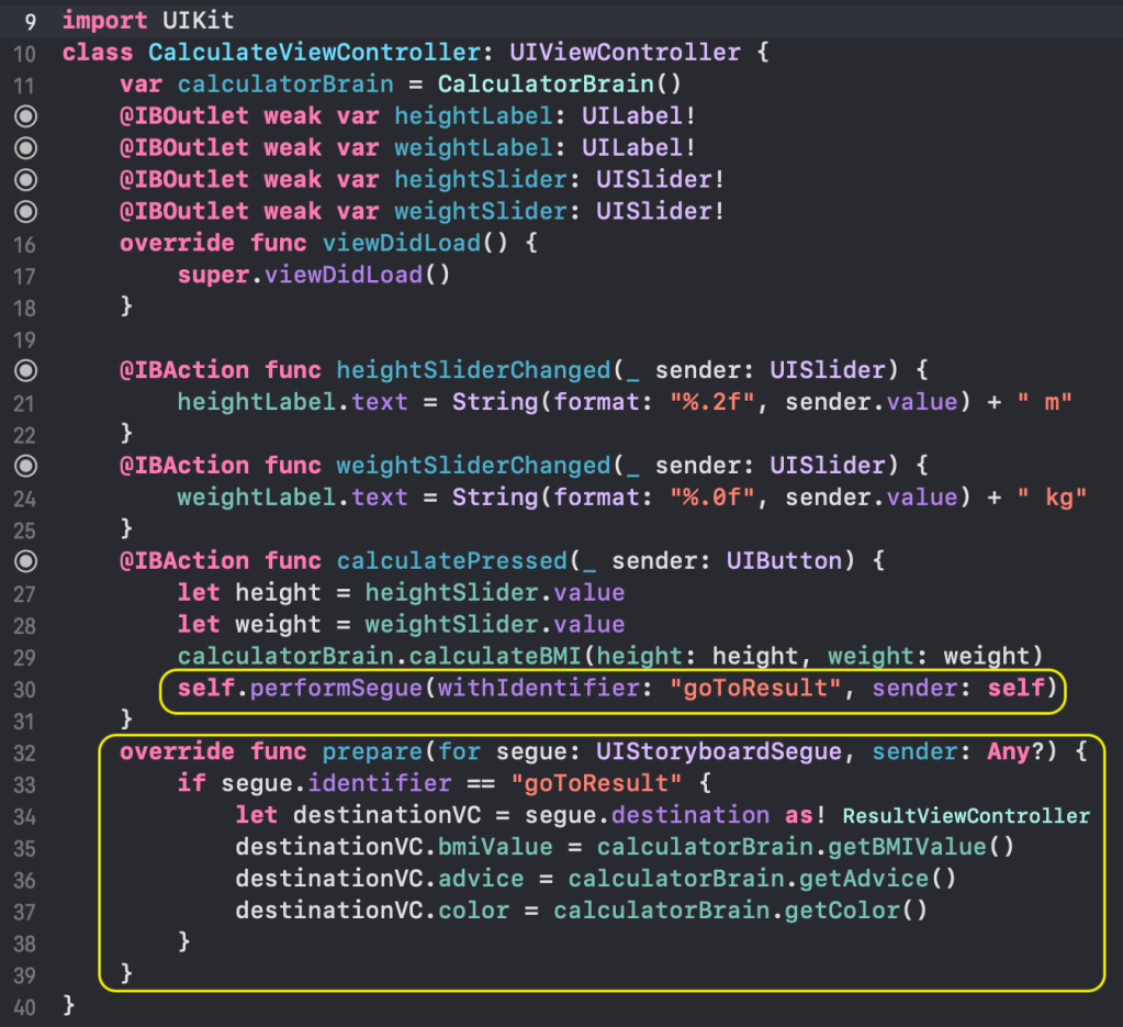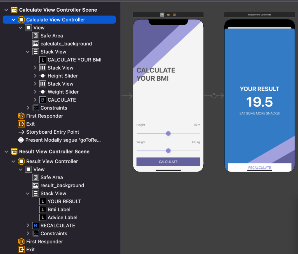 --- tags: 新人資訊 GA: G-YWCCFEGXSJ --- [新人資訊](https://hackmd.io/@newman/portal-info) # 技術-iOS #6-終於進到兩個頁面了,學得好慢啊 隨著課程的安排逐步加入各種技術元素,這次要演練兩個頁面轉場機制,以無聊的 BMI 計算為主題,還有講解更多 Optional 的用法。首先載入骨架專案:https://github.com/appbrewery/BMI-Calculator-iOS13 打開主畫面後兩個 View 映入眼簾,怎麼讓 App 控制權在多頁面間切換是本練習的重點。  程式流程為輸入身高體重後輸出 BMI,身高體重採用 Slider 元件可以滑動設定,計算公式很簡單就是體重 (kg) / 身高 (m) 的平方,輸出有玩點小花樣,若高過一定的數值顯示紅色並顯示建議文字,相對的一般或太低則顯示對應的顏色和不同的建議文字。首先遵守 MVC 設計模式,將 BMI 相關的欄位和計算邏輯抽出為 Model,建立兩個 struct:   其中注意到 swift 語言對於可能的 nil 值處理非常嚴謹,可能為 nil 的變數或型別後面要加 ?,型別變成 optionl(String),optional(Int) 等,不同於單純的 String or Int,要將 optional 轉型成確定的型別,設計師必須在流程上確認有值的前提下,加驚嘆號轉型,若 nil 值強加驚嘆號程式會發生錯誤,這就是設計師要負的責任。當 nil 發生時該填入什麼預設值,最方便的寫法就是雙問號運算子,免去冗長的 if-else。 兩個畫面分別對應到各自的 controller,第一個畫面的 controller 如下,slider 滑動和按鈕觸發程序的做法已經很純熟,只有「過場」到第二個畫面需要注意如下:  執行 controller 本身的 performSegue() 方法,指定 identifier,同時 override 父類別的 prepare 方法,依據 identifier 轉移給對應的 viewController,並把參數值傳進去,如這裡的 bmiValue,advice,color,轉移對象的 viewController 必須有這三個屬性,以此為依據在 viewDidLoad() 中改變呈現方式;並在 recalculate 按鍵觸發時執行 dismiss() 將控制權交還給上個畫面:  編譯完成執行囉: https://www.youtube.com/shorts/pLSeGjkhZWY?feature=share By Newman Chen 2022/7/13