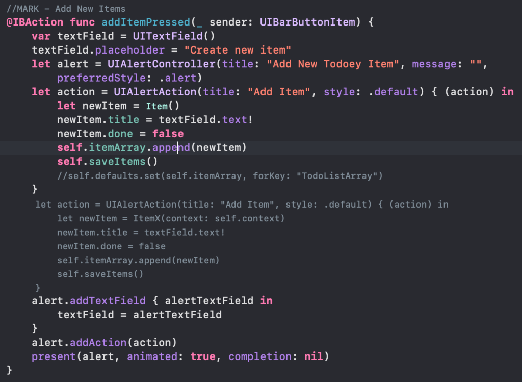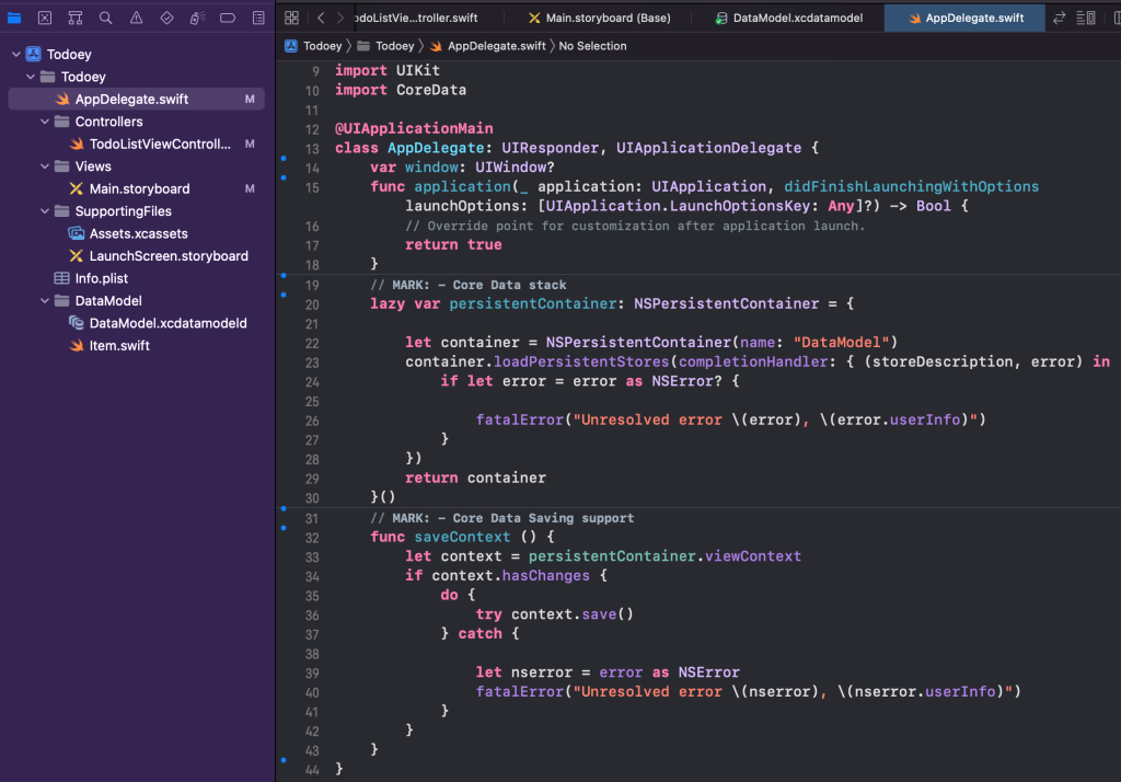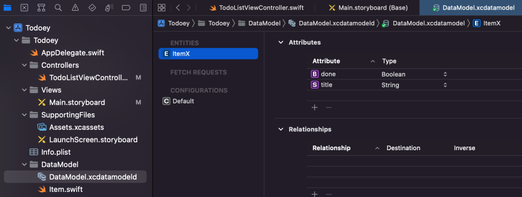 --- tags: 新人資訊 GA: G-YWCCFEGXSJ --- [新人資訊](https://hackmd.io/@newman/portal-info) # 技術-iOS #10-Local Persistence,本地端儲存 學習主題如下: 1. 利用系統內建物件 UserDefaults,可以儲存基本類型資料,包含 array。 2. 利用系統內建 document 目錄,可以將客製物件經過 encode 轉成 plist file 型式儲存。 3. CoreData,這是由 swift 將 SQLLite 包裝轉換成物件模型的儲存模組。 先下載課程提供的專案骨架:https://github.com/appbrewery/Todoey-iOS13 ,此專案幾乎是空的,所以一開始從元件庫拉一個全新的 UIViewController,它是由一個 TableView and a Prototype Cells 組成,本專案演練的應用情境是一個 ToDo List,只需要一個頁面,所以將原本的頁面刪除,將此新頁面設成「起始頁面」,並將全來的 ViewController 更名為 TodoListViewController,並繼承系統內建的 UITableViewController。   建立 View and Controller 的關聯:  第一種最簡單的儲存方式就是 UserDefaults,可以在 Controller 宣告總體變數 let defaults = UserDefaults.standard,將 TodoList 存在一個 itemArray (string array) 裏,項目異動時執行 self.defaults.set(self.itemArray, forKey: "TodoListArray"),在 viewDidLoad() 事件中把它讀出,達到 App 關掉後重開仍能保有資料的目的,整個應用程序非常簡單。  第二種方式是為了儲存「客製化物件」,因為 TodoList 的項目不僅是一個字串,若要加入一個完成與否的 flag,UserDefaults 就無法支持了,因此就要比較麻煩的執行 encode 後再儲存,儲存位置也需要在系統規範有權限的位置,以下就是抓出 document directory 的方法,順便在其中塞入一個 plist file:  物件定義中必須 implement protocol Codable  先要實作 TableView 相關的 method,確認資料顯示正確:  在新增按鈕觸發時跳出對話筐,確認後儲存,程式碼如下,save() 時必須經過 encode:   另外新增一個互動功能,就是點選項目時,toggle done 這個欄位,並立刻儲存一次:  在 viewDidLoad() 加上 loadItems(),此時是 decode,這樣就完成應用流程。  執行的樣子如下:  第三種儲存方法為 Core Data,是 swift 以 SQLLite 為底層而包裝起來的物件模型,使用起來不需要關心 SQLLite 如何儲存,只要面對 Object 的世界即可。使用方法是先「新增物件模型」,以下列模板新增 file:  點選 data file 會出現 swift 提供的物件結構設計畫面,把他加入兩個屬性 title and done:  為了在 App 啟動時引入物件模型,必須在 AppDelegate.swift import Core Data 並加入一些程式碼,因為系統提供 Core Data 的專案模版,我們可以以此模板另外新增一個測試專案,再把程式 copy 過來,可達到一樣的效果。  如此一來已經可以在專案中使用此物件了,相對於一般物件的建立方法,Core Data 的物件建立方法稍有不同,但也非常類似:let newItem = ItemX(context: self.context),其中 context 必須先宣告成總體變數:  save() 則省掉 encode 程式,顯得更精簡:  load() 程序則改成資料庫查詢語法:  最後附帶再做一個功能:搜尋。拉一個 Search Bar 元件:  以 extension 方式對 Controller 加入對 UISearchBarDelegate 這個 protocol 的參照,實作兩個方法如下,分別處理 search button 按下去的行爲,執行對 Core Data 資料庫的查詢,和 search text 字元變動時的行為,特別針對欄位清空時讓 UI 元件恢復起初狀態:  執行狀況如下: https://youtu.be/xIRQl0hssjU 以上對 Core Data 做了基礎的演練,除此之外,本地端儲存方法還有 Realm,待下階段再續。 By Newman Chen 2022/8/28 後記 2022/8/31 試著新增一個 Entity 「Category」,並建立一對多關聯到 Item,發現 Category 名稱與內建物件重複,為避免困擾欲更名為 ItemCategory,結果似乎系統底層不允許更名,搞很久還是 compile error,稍微窺探一下後面章節 Realm,似乎是更好的本地端儲存方案,可以完全取代 Core Data 的功用,心裡差不多已經放棄 Core Data 了,砍掉吧,哈哈。