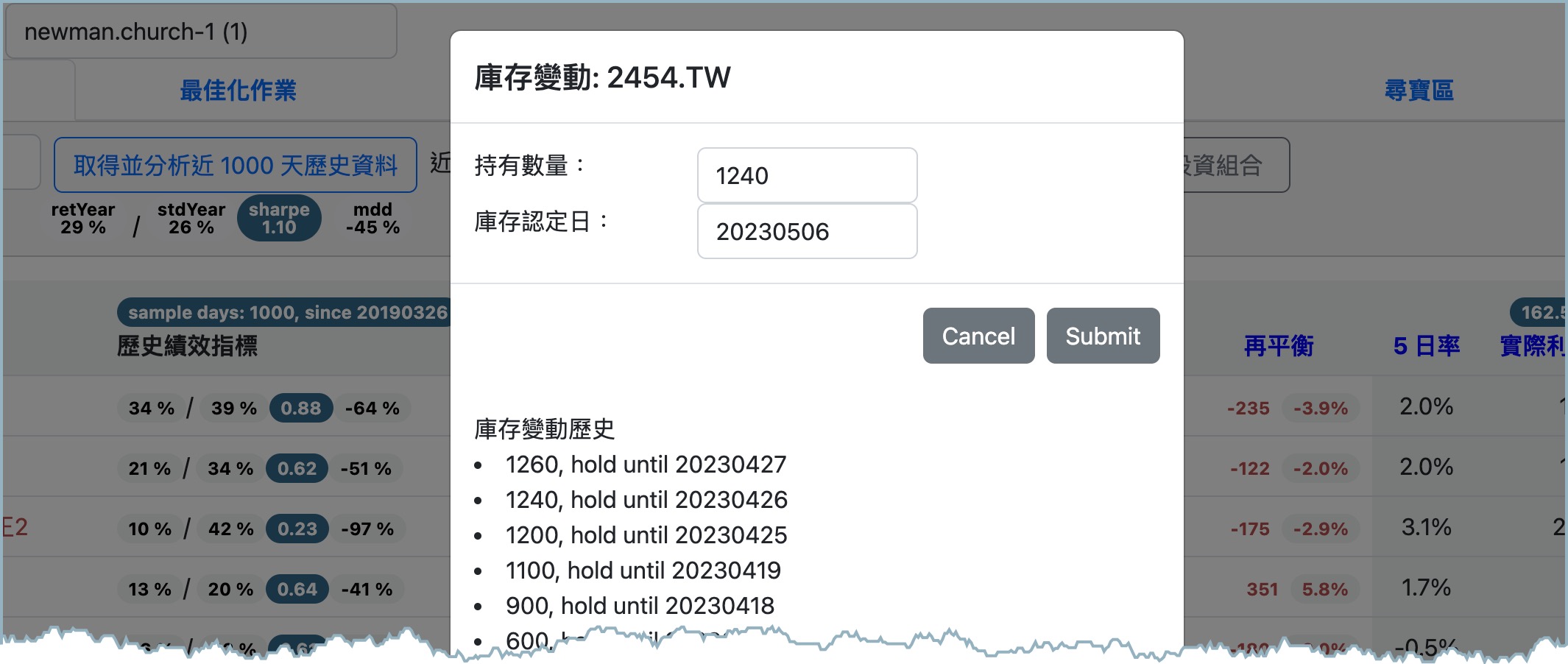 --- tags: 新人資訊 description: 投資組合 資產配置 GA: G-YWCCFEGXSJ --- [Home](https://hackmd.io/@newman/portal) - [新人資訊](https://hackmd.io/@newman/portal-info) # 應用-資產配置管理系統 part.15:用精密的帳務,每日自我挑戰;且管理成本非常小 [上一篇](https://hackmd.io/@newman/portfolio-position-hist) 從「近況分析」的思考出發,悟出對淨值的重視,並展開其影響因素,潛心思考成功要素。再多的工具,若沒有落實到<font color=red>操盤手</font>的日常運作邏輯都是無用,所以需要回歸此核心角色,如何成就其強大? 我想除了追求新知以外,就是不斷的自我檢討吧。檢討什麼?當然是績效啊!績效來自於或長或短,或大或小的買賣決策,造成的長短期損益也各自交互影響。每日結帳是必要的,此外也需要緊盯 mtd,ytd 等累計數字,必須見樹又見林。每日把這些長短線績效攤開在眼前,找出非隨機的現象,在腦中建立綿密曲折的因果網路,這就是成長的養分。 為了檢討每日操作,紀錄工作就無法逃避了。原本我只紀錄「當前持有數」而丟棄所有歷史變動資訊,這肯定不行的;但我也非常不想花太多時間記帳,時間是我們該錙銖必較的重要成本項。研究市面上的管理軟體,大多脫不開「交易」層級,試圖搞清楚每一筆交易的損益,這個我早就不認同了,甚至認為這根本就是「干擾」! 最後我得到了相對較佳的解法,就是於每日收盤後紀錄當天廝殺後留下的部位數。也就是當沖或換倉損益我先直接忽略,因為在我的策略中它只會偶爾隨緣發生,大部分的績效來自於基本面選股的長期持有,其次是順應市場隨機性,和事件影響市場情緒所造成的波動,在相對小的比例上微調部位。努力開發之後終於實現了每日每標的庫存數的精密掌握,操盤手可以回朔任何一段時間的操作,榨取最大經驗值!絕對不讓太大的損益發生的莫名其妙。 如下圖在紀錄當天庫存時,系統自動將當前數字保存到歷史區域,這也就是僅有的管理成本。  如此就可以回朔任何一天的狀況,天天勇敢的面對這些赤裸裸的數字,不必為單日損益而自我安慰或沾沾自喜,看看 mtd ytd,防範小問題的擴大,追求長期獲利可以笑到最後。  對任一個標的還可以展開到每一天,因為經驗都是付出代價得來的,需要珍惜每一個學習機會並細細檢視。以下這個精心設計的雙圖表,更精密的刺入剖開獲利的結構:  隨著開發的功能越來越複雜,能夠理解與欣賞的人也越來越少了,這是必然的結果,但分享使我自己成長,也是給未來的我。 By Newman Chen 2023/5/7