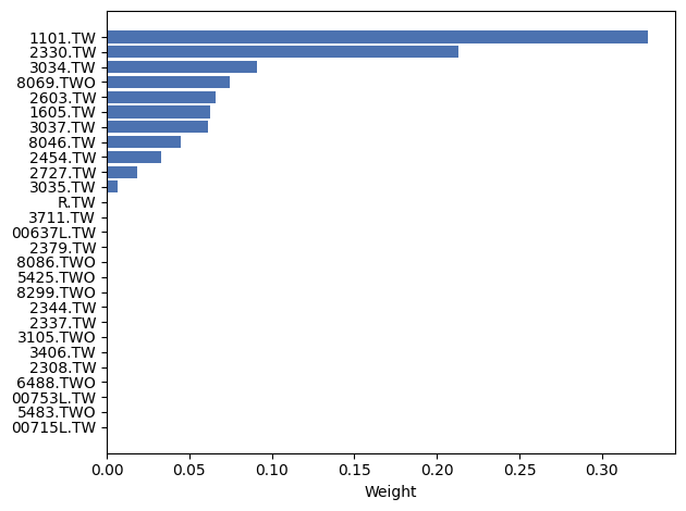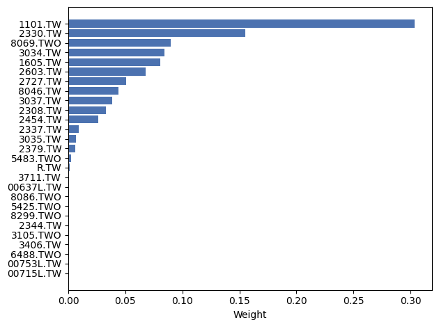--- tags: 新人資訊 description: 投資組合 資產配置 GA: G-YWCCFEGXSJ --- [Home](https://hackmd.io/@newman/portal) - [新人資訊](https://hackmd.io/@newman/portal-info) # 應用-資產配置管理系統 part.12:V1.0 之後,探討各種最佳化理論 自從歷經千辛萬苦的錄製了生平第一支影片之後,已經好整以暇多日,好好再度審視自己所講的觀念,目前結論算是滿意。在錄製的影片的事上,雖然經過大量的練習,還是無法達到順暢的地步,但該表達意思都有到位;如果用 1.5 倍速播放可以大幅抵銷許多缺點,推薦一看。 https://youtu.be/-0FPVE0oNJ8 {%youtube -0FPVE0oNJ8 %} 悠閒漫步的氛圍,正是學習新知與迸發創意的溫床,來研究一下理論吧!很快的我就發現了一座寶庫:一位出身天文物理名叫 [Robert](https://reasonabledeviations.com/about/) 的年輕人,竟然把數十年來主要的投資組合最佳化的演算法都實作成 python package [PyPortfolioOpt](https://pyportfolioopt.readthedocs.io) 並公開分享給大眾使用,真是太令人敬佩了,在此恭敬地引用: > Martin, R. A., (2021). PyPortfolioOpt: portfolio optimization in Python. Journal of Open Source Software, 6(61), 3066, https://doi.org/10.21105/joss.03066 首先定義問題,如同大部分現實世界的問題: > 在投入有限額度的<font color=red>成本</font>下,追求最大<font color=red>效益</font>。 在此投資領域,問題就變成: > 在承受特定程度的<font color=red>風險</font>下,追求最大<font color=red>報酬</font>。 而面對不可知的未來,需要設計適當的估計量(estimator)去估計。其中「報酬」的部分在此探討不多,就是用歷史資料的年化報酬率,最佳化著墨的項目主要在於「風險」的估計和消除。風險的基本量化表示法,對於個股而言就是標準差,對於投資組合而言就是:「共變異矩陣 Σ」與權重 𝑤 的乘積: $$ \omega^T\Sigma\omega $$ 在研讀理論以前,這個值是用投資組合的日報酬卷算出來的,只能算是這理論裡的一個特例,就是 sample_cov,此外風險估計量還有許多算法如下: > sample_cov > semicovariance > exp_cov > ledoit_wolf > ledoit_wolf_constant_variance > ledoit_wolf_single_factor > ledoit_wolf_constant_correlation 在套件中都是一行可得!不禁再次向作者致敬 Orz 試著視覺化一組 portfolio,採用 sample_cov 算法:  可大致看出標的間的關聯性,顏色越深者表示關聯性低,搭配起來可以對沖風險。 而作者比較推薦 ledoit_wolf 算法,還撰文解說:[Honey, I Shrunk the Sample Covariance Matrix](https://reasonabledeviations.com/notes/papers/ledoit_wolf_covariance/),有了高手背書,我這凡夫俗子就直接引用吧,算出來的數字比 sample_cov 略小,據說因此可讓最佳化結果較為穩定。此共變異矩陣若畫出圖來非常相像,肉眼無法分辨出差異。 # 以各種不同的風險估計量,執行最佳化運算 有了報酬和風險的估計量,就可以開始執行最佳化演算法了。先跑一個最一般性的,就是最大化 sharpe,得出權重和績效: > 最佳化 sharpe ratio: > Expected annual return: 44.3% > Annual volatility: 26.6% > Sharpe Ratio: 1.59  sharpe ratio 觀念在系統中已經多次使用,從這裡的理論架構觀點,可解釋成「效率前緣的 45<sup>。</sup>切線交點」,效率前緣是給定橫軸為特定風險尺度下,最佳報酬的投資組合,縱軸定義為報酬的情況下,座落在最高點位置。套件也可畫出整條效率前緣,看起來更有 fu 了:  但前面有指出關於報酬的預測是有待商榷的,因為我們直接把歷史年化報酬當成估計量比較不合適,像這裡的 44% 的歷史報酬能否在未來重現?我們寧願嚴格控制自 high 情緒,應該去針對最小風險去執行最佳化,得出權重和績效: > 最小化風險: > Expected annual return: 14.3% > Annual volatility: 15.8% > Sharpe Ratio: 0.78  結果這結果有點脫離現實,大部分權重配給大盤指數和 1101 台泥!這是怎樣?波動去掉是不錯,但報酬也去掉了!所以實務上還是要適度調高風險值,讓其他標的有參與的機會啦。所以給定期望報酬 30% 跑出來會怎樣呢: > 期望 30% 報酬的條件下,最小化風險: > Expected annual return: 30.0% > Annual volatility: 19.5% > Sharpe Ratio: 1.43  這樣相對合理一點。 接下來再玩一些變化式,一樣聚焦在風險衡量部分,把正報酬忽略掉,只考慮負報酬的波動性,若期望報酬 30%,最小化波動的結果: > 期望 30% 報酬的條件下,最小化負報酬的波動 > Expected annual return: 30.0% > Annual semi-deviation: 13.5% > Sortino Ratio: 2.07  另外系統中已經強調的 drawdown 也有相關的理論依據,最小化 CDaR (Conditional Drawdown at Risk),期望 30% 報酬的結果: > 期望 30% 報酬的條件下,最小化 draw down > Expected annual return: 30.0% > Conditional Drawdown at Risk: 16.00%  # 較新穎的最佳化演算法 HRP (Hierarchical Risk Parity):以相關性爲距離矩陣執行分群 (clustering),從尾端兩個資產開始求解最佳化權重,一層一層向上合併,得到所有資產的權重。非常有趣的想法,此套件也已經完成實作,真厲害!求出的解比較不會出現一堆零: > 以 HRP 演算法求解最佳權重: > Expected annual return: 26.6% > Annual volatility: 20.7% > Sharpe Ratio: 1.19  還能畫出美美的樹狀圖,清楚交代合併過程,也可以看出哪些資產彼此的相關性:  最後還有一個演算法 CLA (Critical Line Algorithm),此法作者著墨較少,我也就暫不深究了。 以上研究暫告一段落,日後再想辦法抽取精華整合到系統中。 Newman 2023/3/27