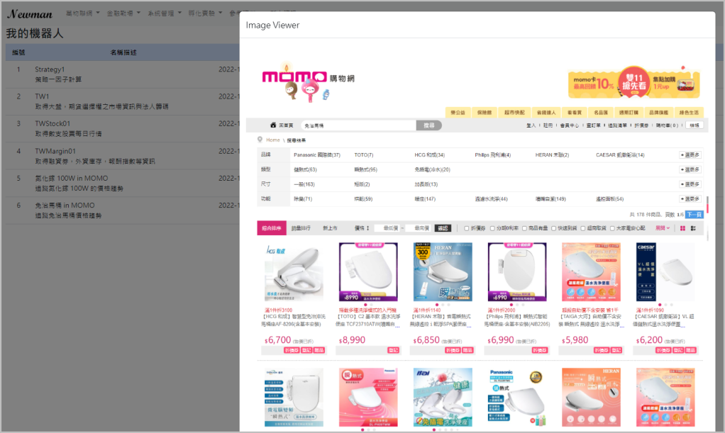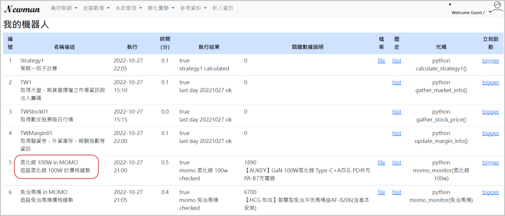 --- tags: 新人資訊 GA: G-YWCCFEGXSJ --- [新人資訊](https://hackmd.io/@newman/portal-info) # 應用-想買東西?先派出機器人幫你監控價格吧! 每次想到用一台電腦連上網就可以找到任何感興趣的資料,就覺得興奮;要娛樂可以要作嚴謹的研究也行,基本上可以期待網路上存在著「任何資料」,對於有限理解力和注意力的個人來說,可以說就是無限大的存在!再加上社群生態的成熟,不只滿足知識的需求,透過網路也可以實際運作各式各樣的商業模式或社會運動,歷史上從來沒有一個時代對許多社交能力不太好的宅宅如此友善,網路不會使人際關係疏離,反而擴大了溝通的管道而聯繫的更緊密。 基於以上信念,我每天總是花費大量的時間在閱讀線上文章,電子書,新聞,線上課程,Youtuber 或 Podcaster 的分享,深深體會到人的注意力是今時代的稀缺資源,逐漸也對五花八門的網路世界產生更嚴格的篩選機制,當我接觸到「爬蟲」這種技術立刻就產生濃厚興趣,用程式幫我上網的概念。陸陸續續東爬西爬,一般公開的 csv, json, html, 表格類資料當然是可以,太雜亂的資料用 regular expression 來對付,要經個人化帳號密碼認證的也沒有問題 (不是破解只是合法的自動化取得自己的資料),最近連 pdf 內容也爬進去了,逐漸的歸納出一些應用類型,今天就來描述一下「價格監視器」的用途。 依照個人親自經歷和觀察,當我們想要探索一個領域,或已經確定要買特定東西,總要經歷一段時間的觀察,對商品規格和價錢多方作比較,有些人較快作成購買決策,也有些人會觀察很久,等到對東西的喜歡程度到達一個高峰,同時遇到價格甜蜜點出現,然後順理成章的完成快樂購物流程。所以我就想設計一個價格監視機器人,每天自動到特定網站查詢,把關鍵資訊記起來,同時即時用 Line 通知。如前一陣子我想要入手折疊腳踏車,預期要可以搭配大眾運輸或小轎車,用這種不太快不太慢的方式到處優遊!從起心動念到入手大概花了一個月,到後來主要品牌和功能規格大小等等都已經非常熟悉了,這段時間若再搭配一些自動化爬蟲機器人那就更事半功倍了。 這次就用我實際關心的兩樣商品為例,一是「氮化鎵充電器」,這是有賴近年來非矽基的化合物半導體技術逐漸成熟,讓原本帶筆電出門要同時攜帶又大又笨重的變壓器成為過去式,重量輕體積小瓦數又大的氮化鎵充電器已經逐漸普遍,Macbook 使用 45W 這個比較早問世,其他 windows 電腦大部分需要 65W 以上,強調效能的開發機或電競機甚至需要到 100W,這個在半年前都還很稀少,目前技術快速進步中,因此我用「氮化鎵 100W」為關鍵字在 momo 搜尋,發現 100W 的目前接近 2000 元,非常好奇何時會降下來,因此我就設定這樣一個機器人,每天自動去 momo 查完資料記起來,並且用 Line 傳出來,我也已經做了簡單管理介面:https://newman-admin.azurewebsites.net/#/robot001  管理介面將一些重要的資訊顯示出來,如上一次執行時間,執行一次花費了幾分鐘,是否執行成功,執行完後將網頁截圖存起來,並把關鍵資訊解析出來,如這裡我把在 momo 搜尋結果中排名第一個品名和價格當作關鍵資訊存起來,這樣一段時間之後可以一目了然觀察趨勢,按下 hist 顯示歷史執行記錄,在此以另一項關心的商品為例,果然從某一天有降價:  此資訊同時會傳到特定的 Line 群組:  在螢幕截圖中可以順便觀察其他不同品牌的狀況:  此機器人符合我自訂的呼叫規範,是用 python 所撰寫,活在我的一台舊筆電裡面,Console 畫面長這樣,右邊是 Heartbeat Service and Dotnet Listener,左邊的是 Python Listener:  Console 畫面可以查到在 21:00 和 21:05 分別傳出啟動訊息,順利把對應的機器人呼叫起來,這個 Schedule 設在資料庫裏面,當然也可以製作管理畫面以方便使用:  設定完成之後每天九點 Line 會嘟一下,可能有人會覺得我很無聊,每天去 momo 網站查一下不就好了嗎?還這樣大費周章!阿這就是工程師的浪漫啊!重複的事情是不應該由人去做的,禁止,哈哈。當然機器人設好之後我也可以隨興的再去逛其他東西,重點是「隨興」,就是不喜歡每天做固定的動作,只要是人就會忘記,就會厭煩,只有機器不會。 不知這樣的應用有沒有激起一些人的興趣,讓我可以來開發各式各樣的機器人服務大家? By Newman Chen 2022/10/28