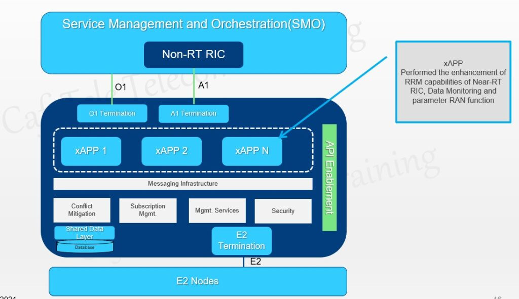 The Near Real-Time RAN Intelligent Controller (Near-RT RIC) is a software platform that hosts microservices-based applications called xApps. Near-RT RIC leverages a Radio-Network Information Base (R-NIB) database that captures near real-time state of the underlying network to provide unique Radio Resource Management (RRM) for distributed RAN infrastructure CUs and DU NE/NF via directional E2 protocols "southbound". This means that the RRMs that power the system, and which are usually embedded within the Base Band, can now be decoupled from the CU vendor software, with MNOs having the possibility to deploy their own or at best 3rd party xApps.